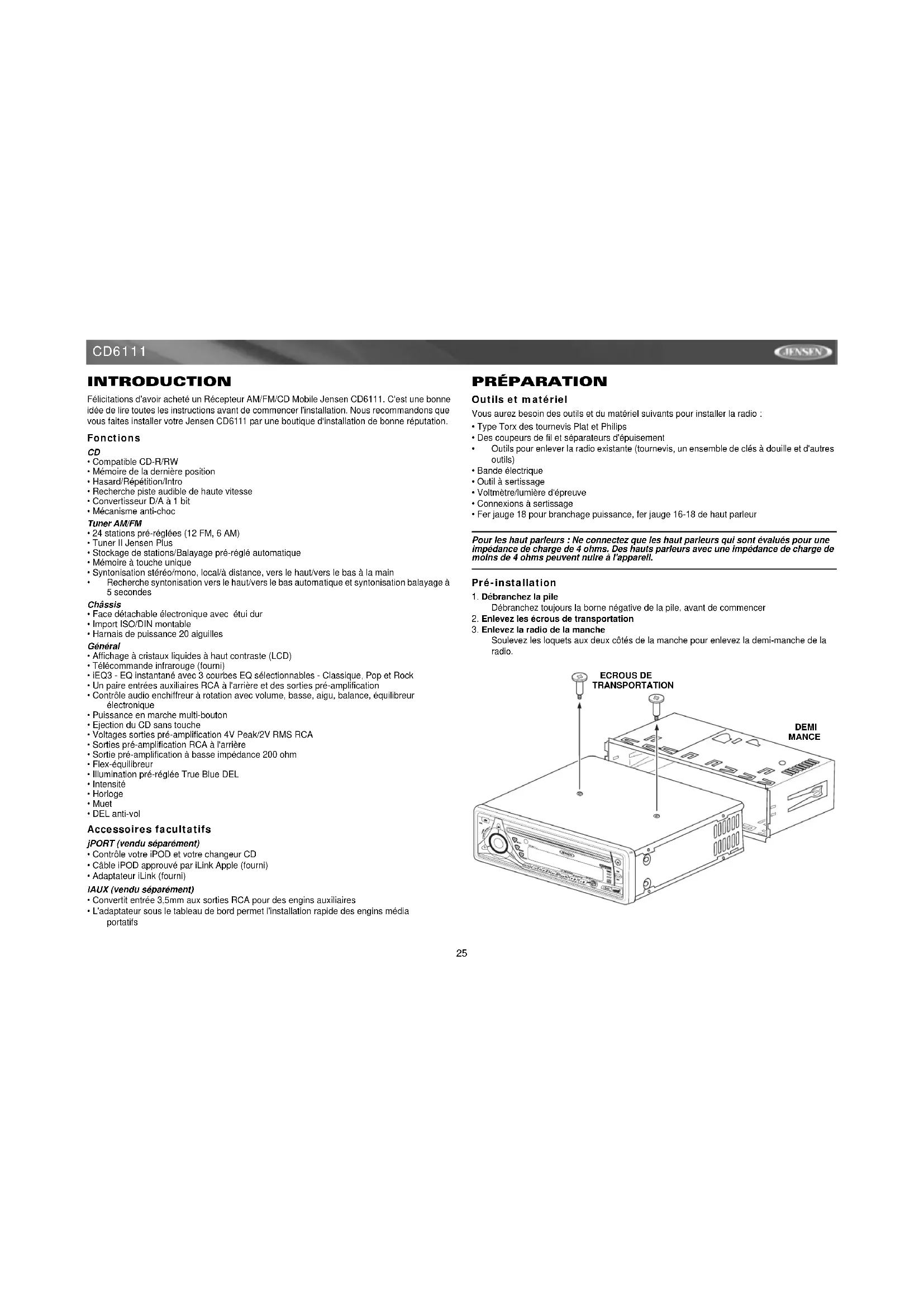 CD6111 - Autoradio JENSEN - Notice d'utilisation et mode d'emploi gratuit