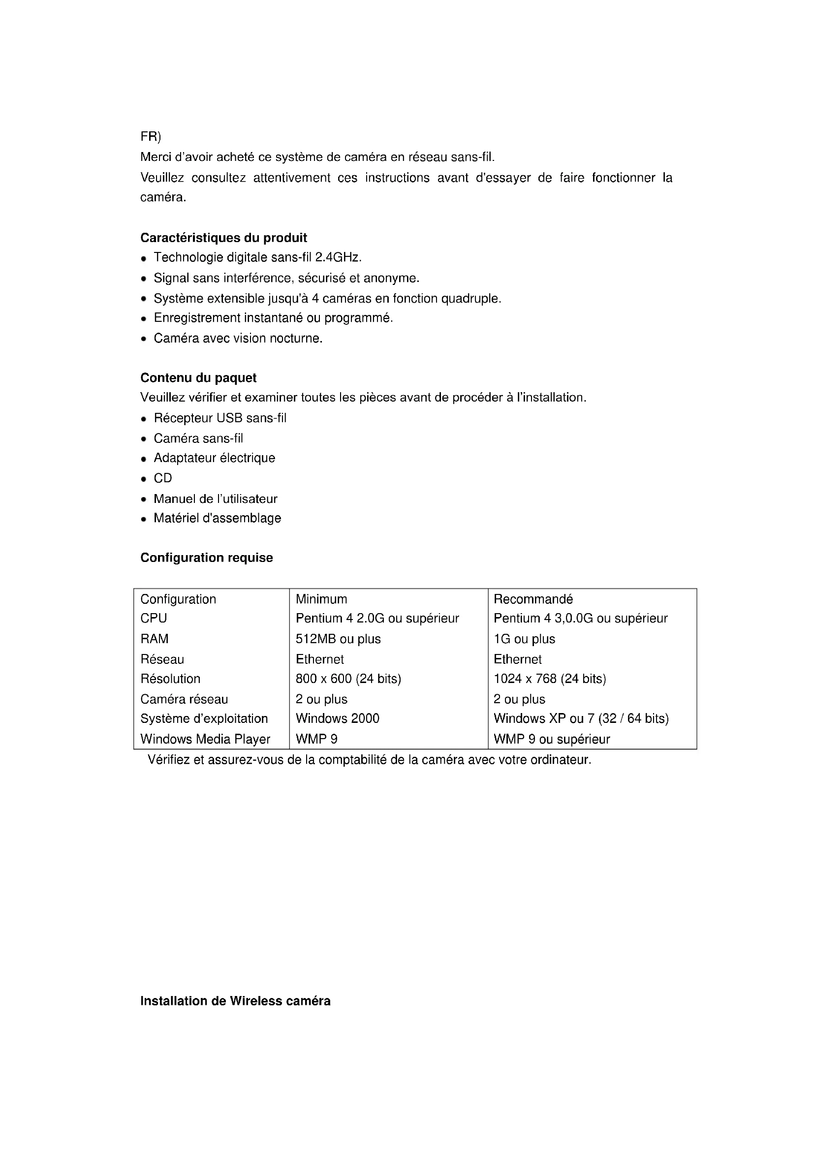 Merci d'avoir acheté ce système deamera en réseau sans-fil.