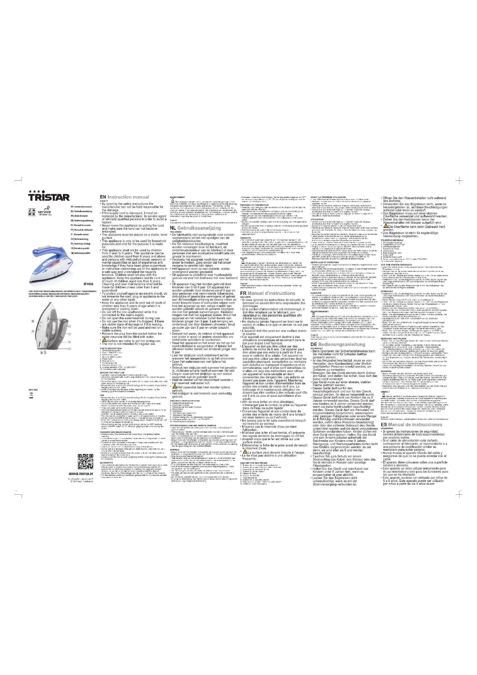 ST8132 - Fer à repasser TRISTAR - Notice d'utilisation et mode d'emploi gratuit
