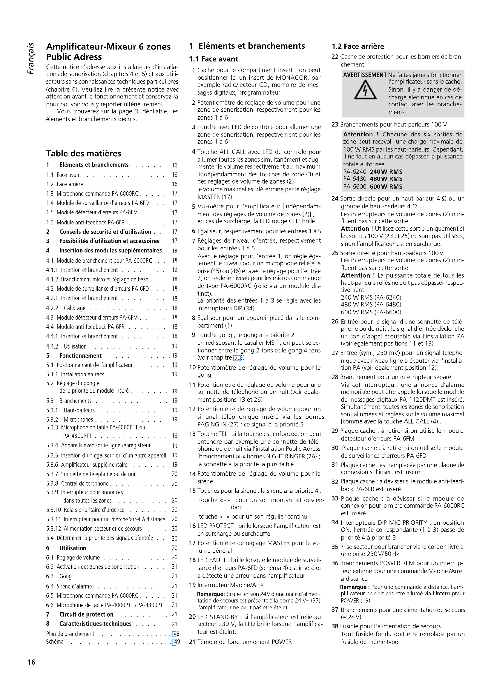 | Sorties 100 V*: | 6 × 100 W, ensemble pas plus de 240 W (PA-6240) |