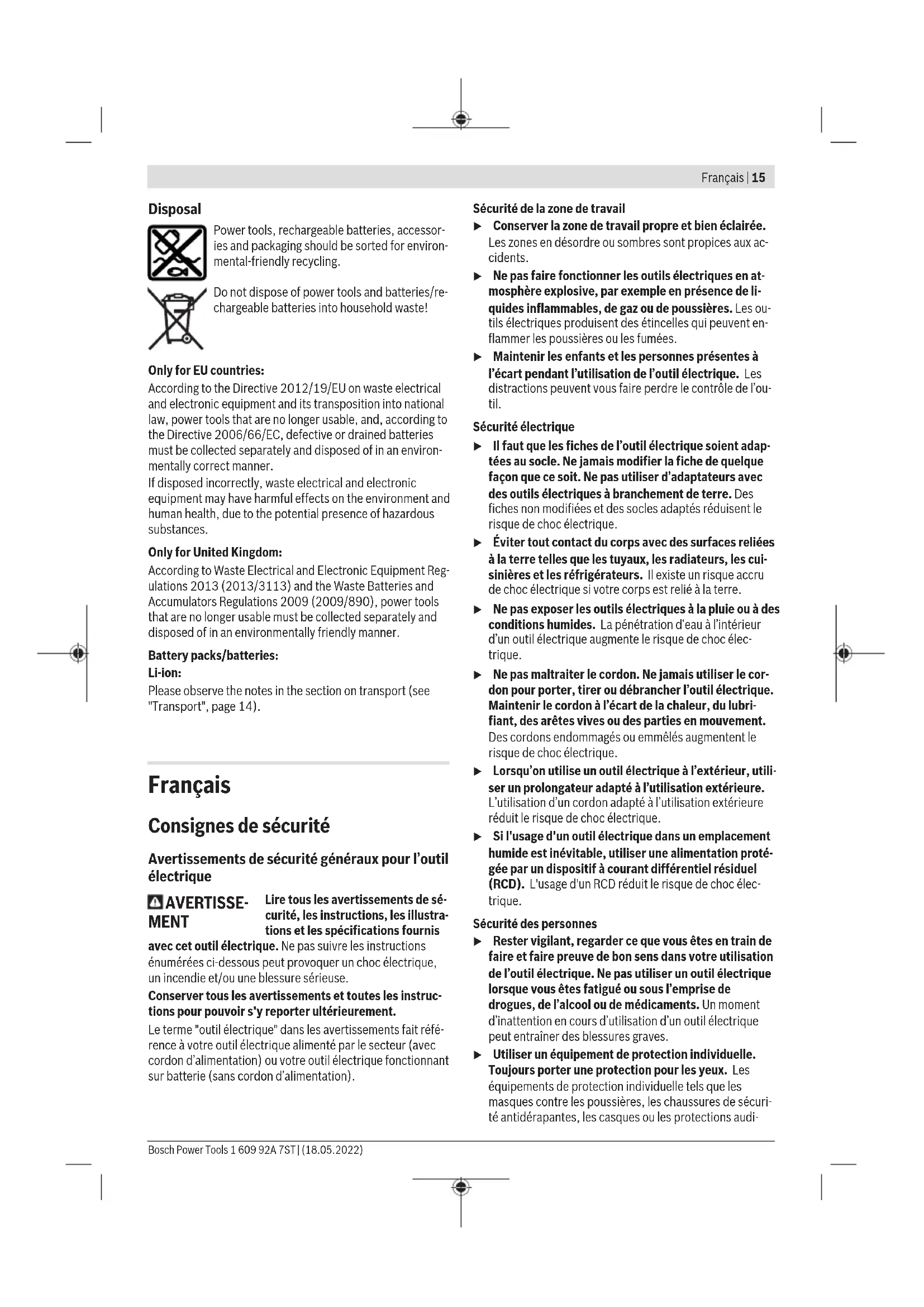 Retrouvez gratuitement la notice de l'appareil GUS 10 8 VLI Professional BOSCH au format PDF.
