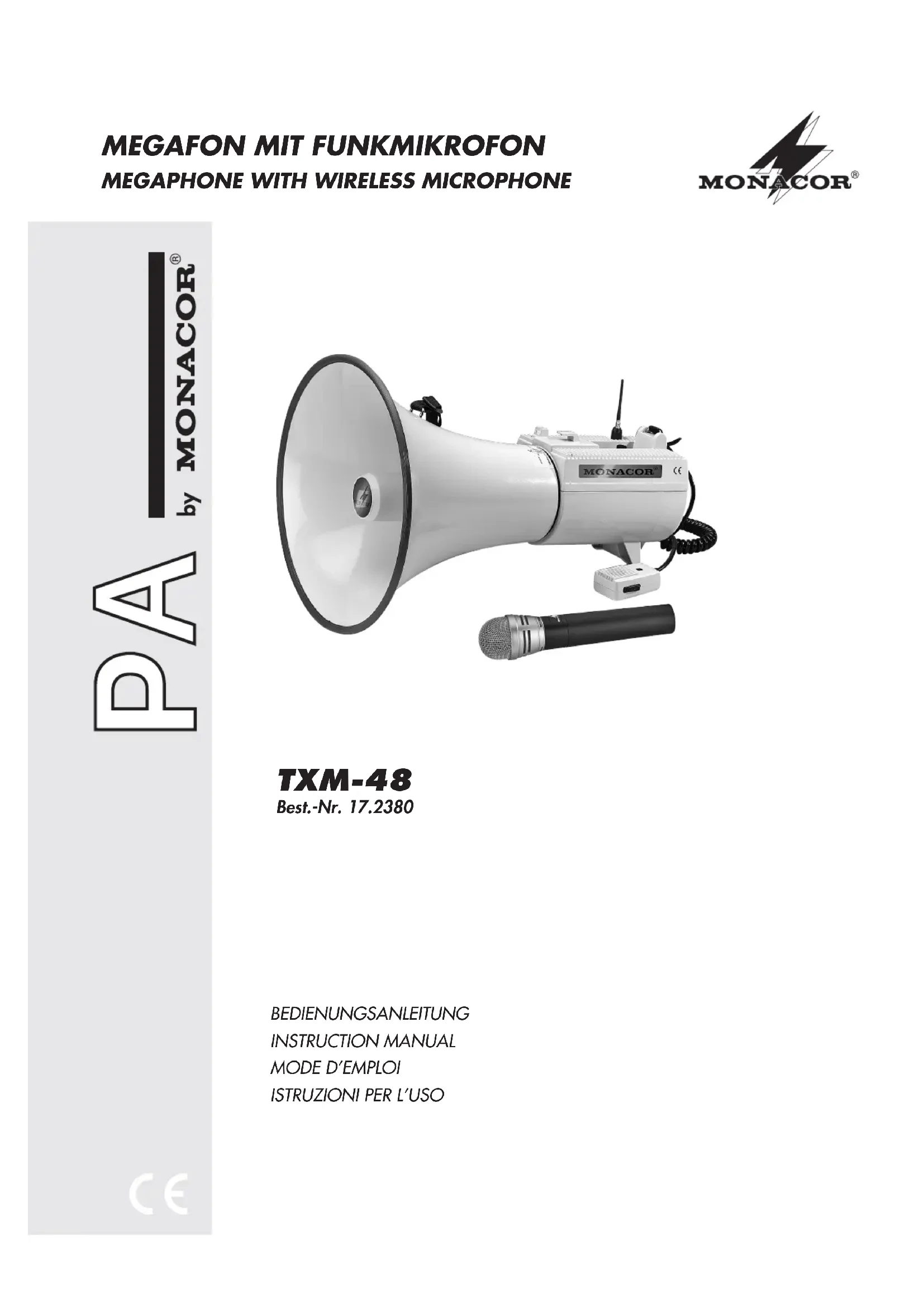 TXM48 - Mégaphone Monacor - Notice d'utilisation et mode d'emploi gratuit