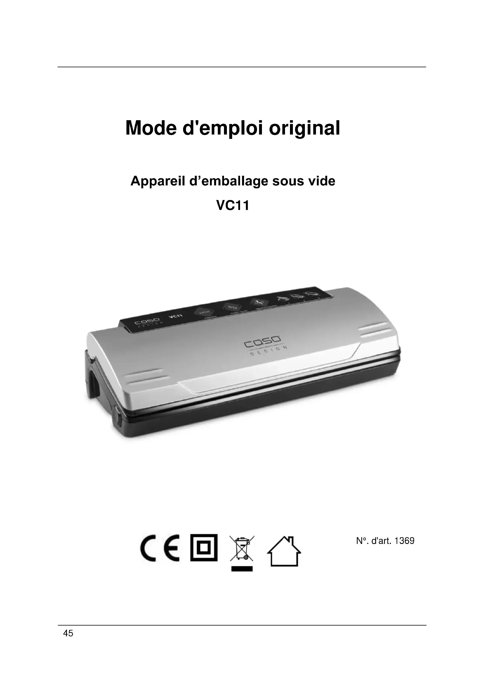 Retrouvez gratuitement la notice de l'appareil VC11 CASO au format PDF.