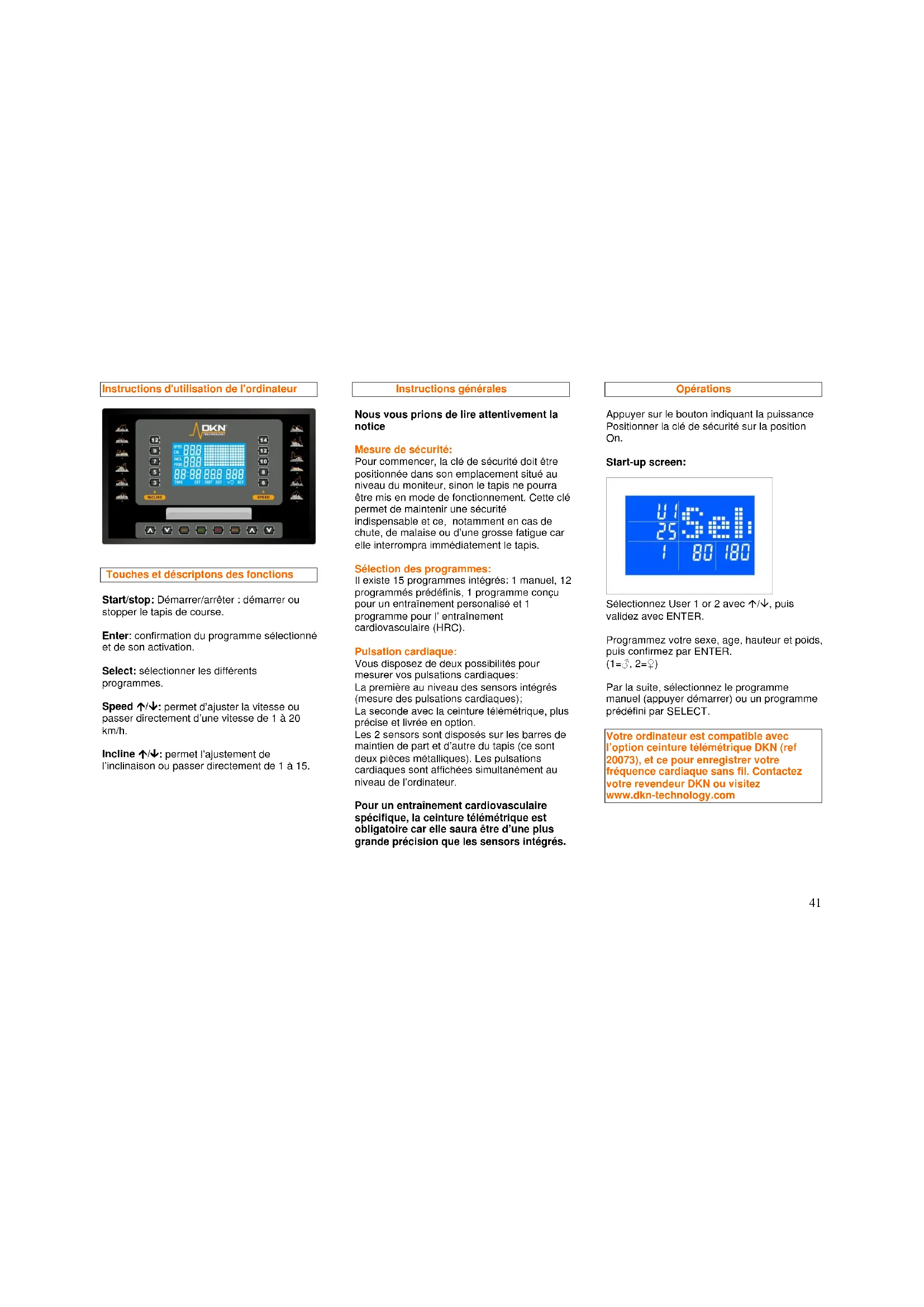 Votre ordinateur est compatible avec l'option ceinture télémétrique DKN (ref 20073), et ce pour enregistrer votre fréquence cardiaque sans fil. Contactez votre revendeur DKN ou visitez www.dkn-technology.com