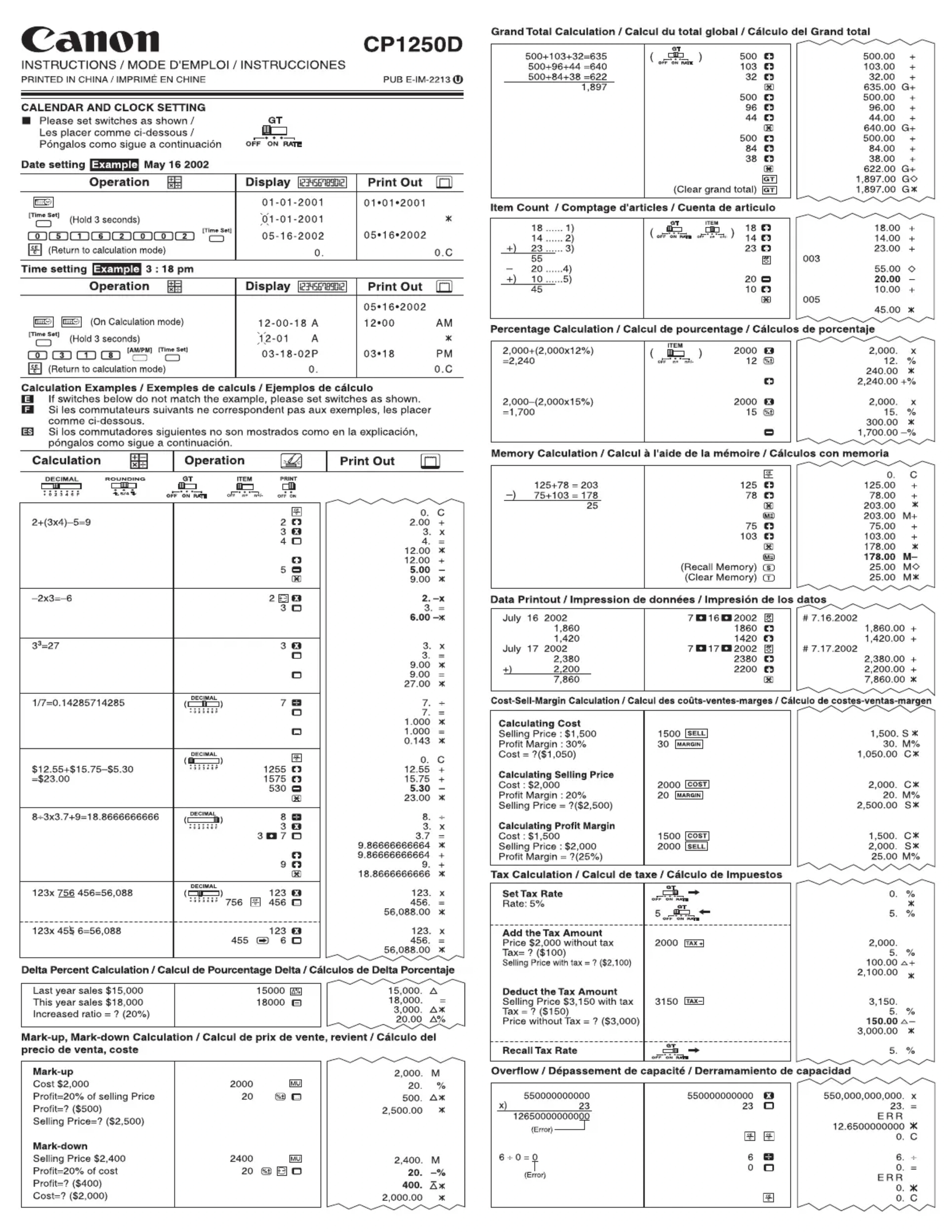 CP1250D - Calculatrice CANON - Notice d'utilisation et mode d'emploi gratuit