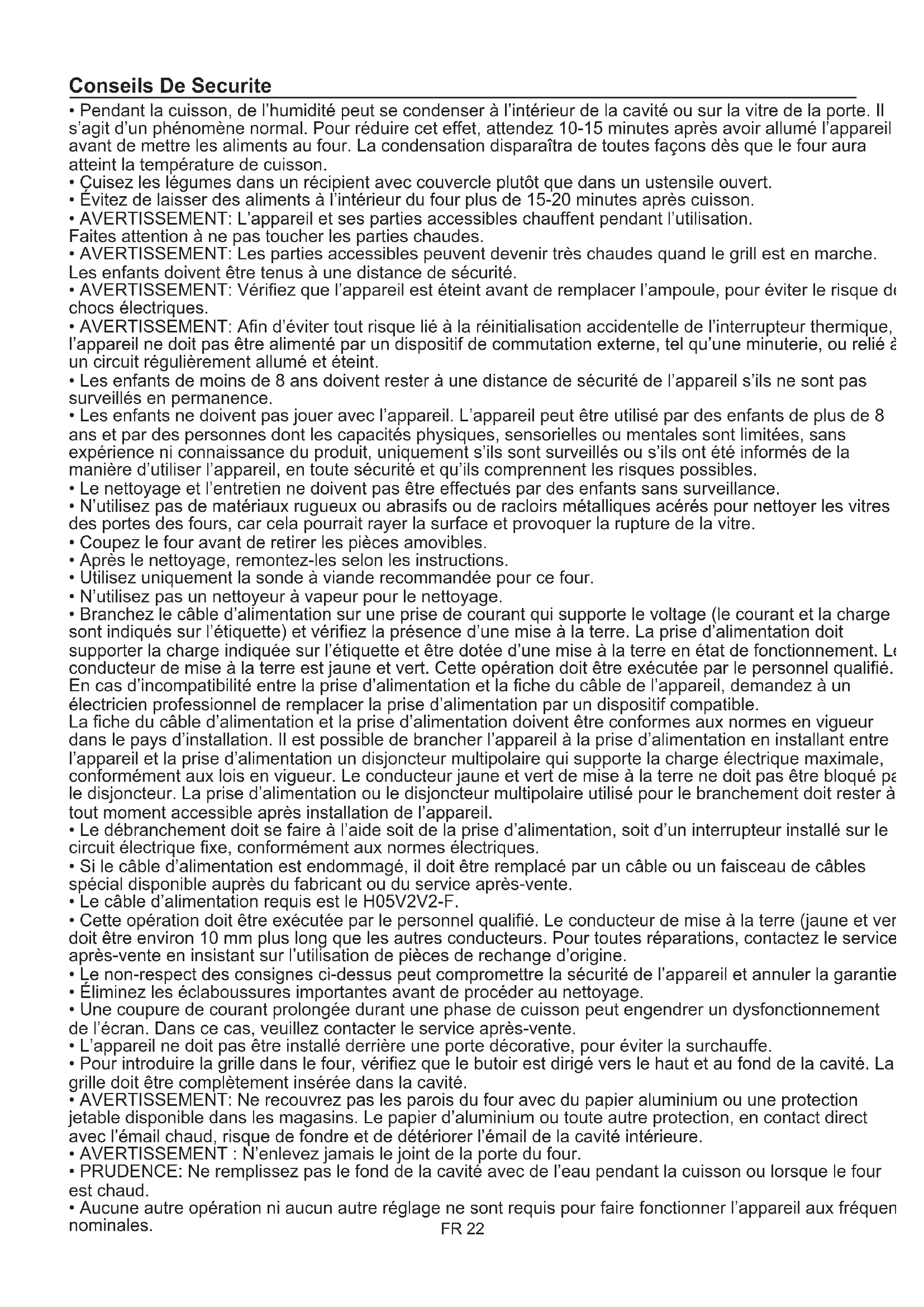 - Aucune autre opération ni aucun autre réglage ne sont requis pour faire fonctionner l’appareil aux fréquences nominales. Conseils De Securite FR 22SOMMAIRE Instructions Générales