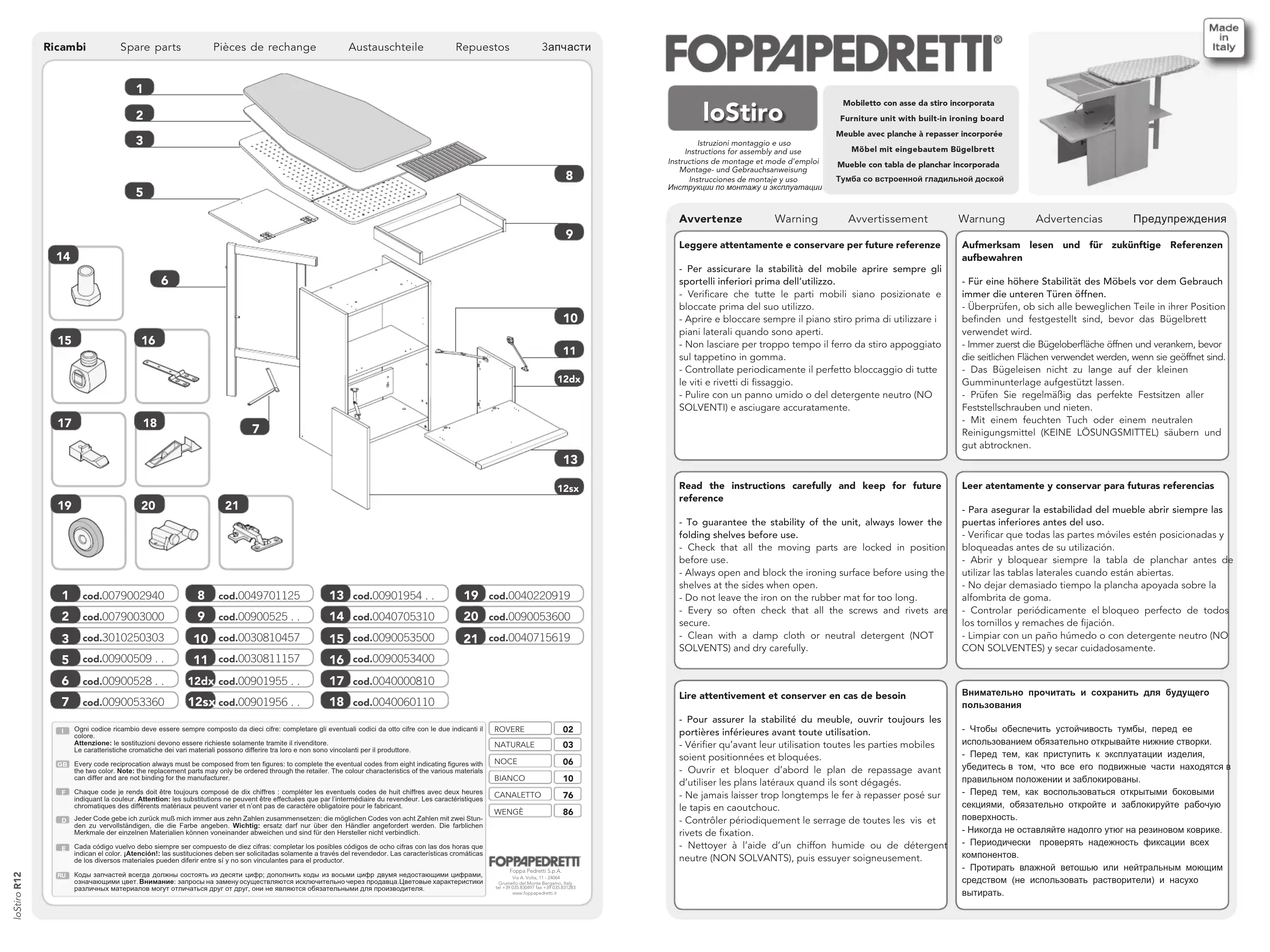 Retrouvez gratuitement la notice de l'appareil LoStiro Foppapedretti au format PDF.