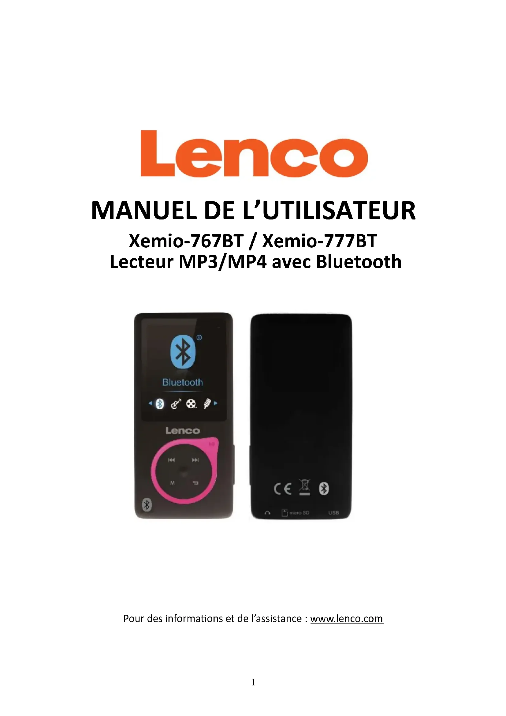 XEMIO767 BT - Lecteur mp3 LENCO - Notice d'utilisation et mode d'emploi gratuit