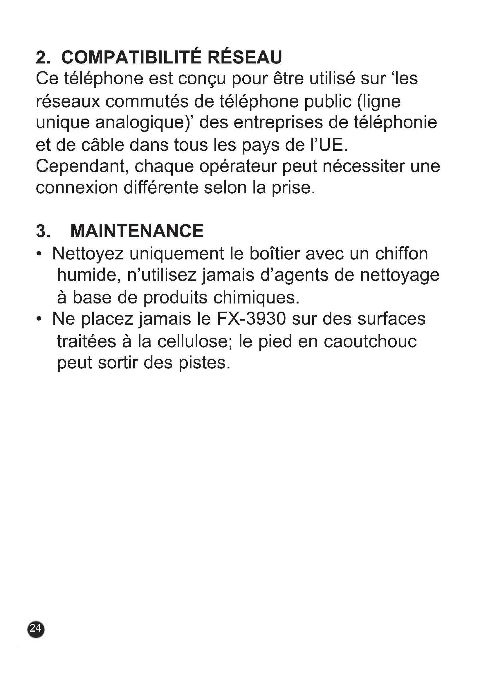 - Ne placez jamais le FX-3930 sur des surfaces traitées à la cellulose; le pied en caoutchouc peut sortir des pistes.