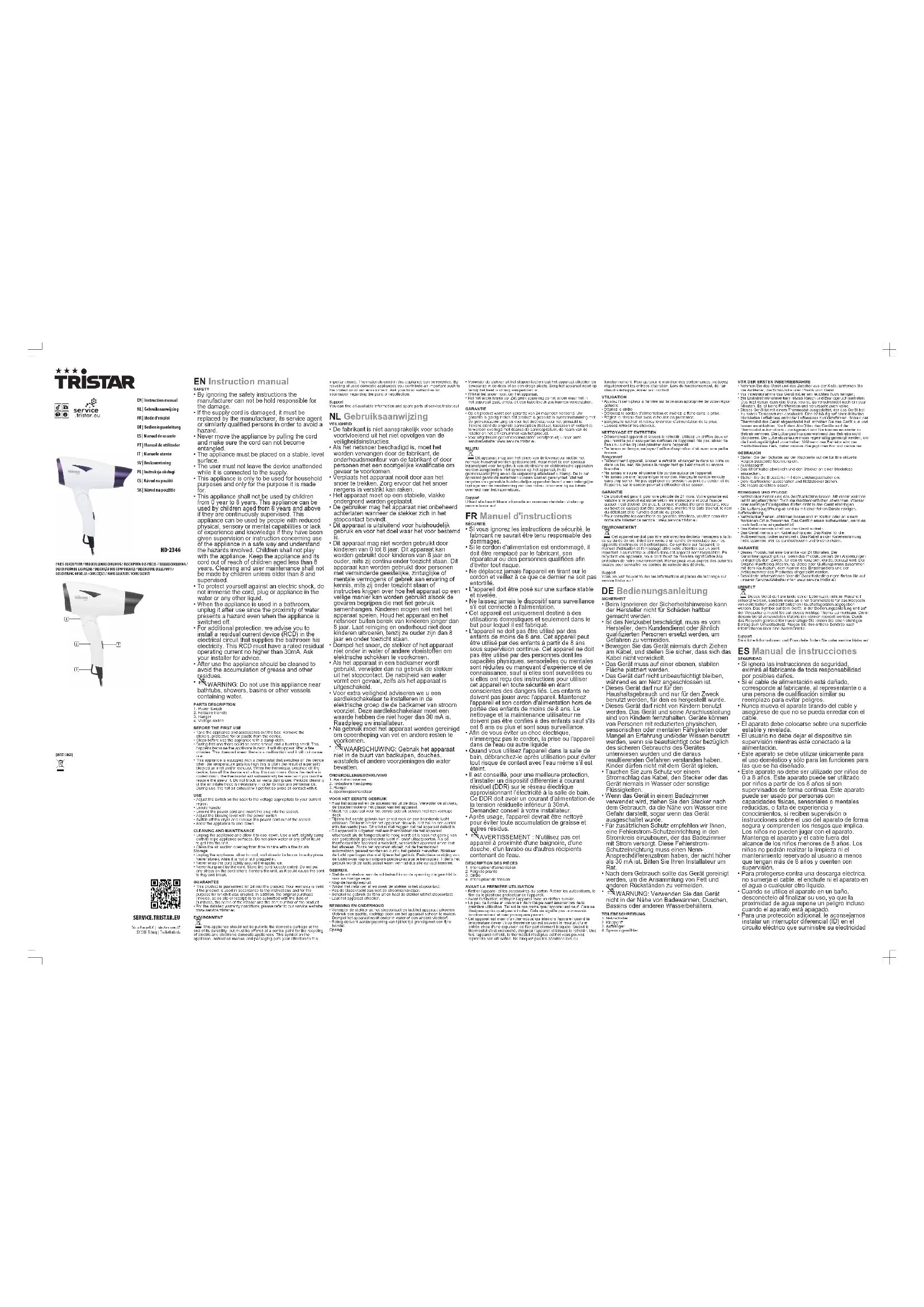 HD2346 - Sèche-cheveux TRISTAR - Notice d'utilisation et mode d'emploi gratuit