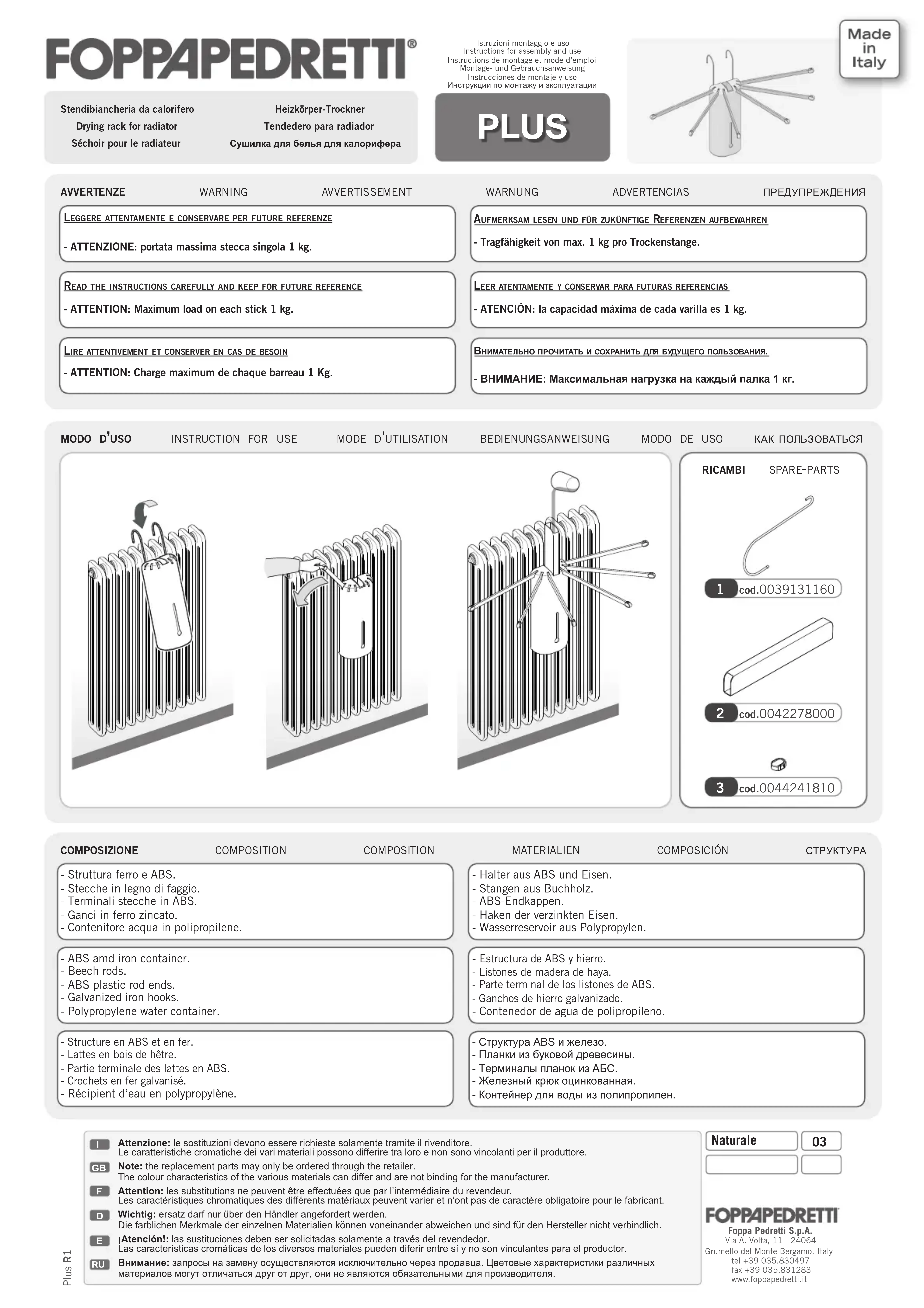 Retrouvez gratuitement la notice de l'appareil Plus Foppapedretti au format PDF.