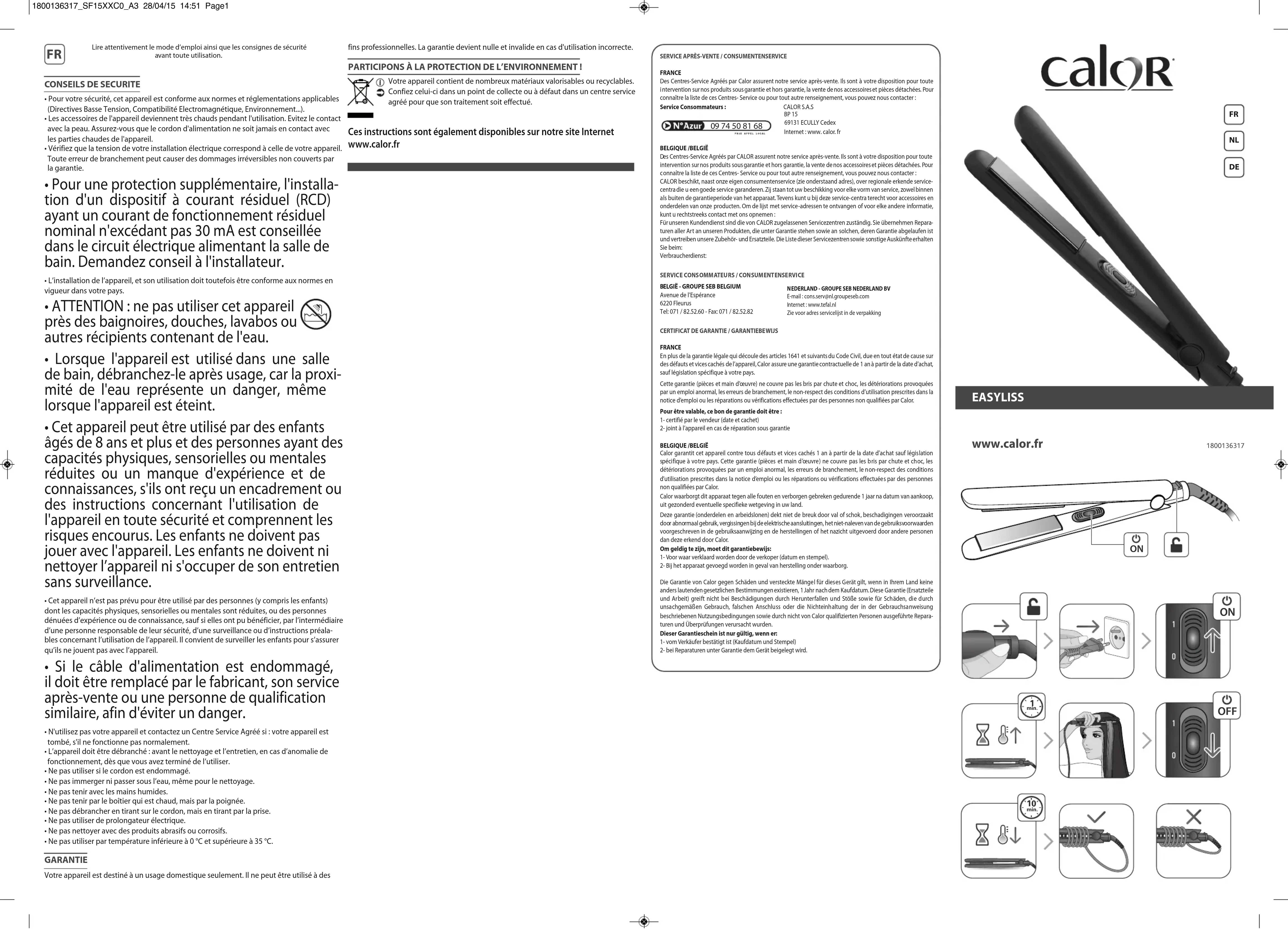 SF1511C0 - Fer à lisser CALOR - Notice d'utilisation et mode d'emploi gratuit