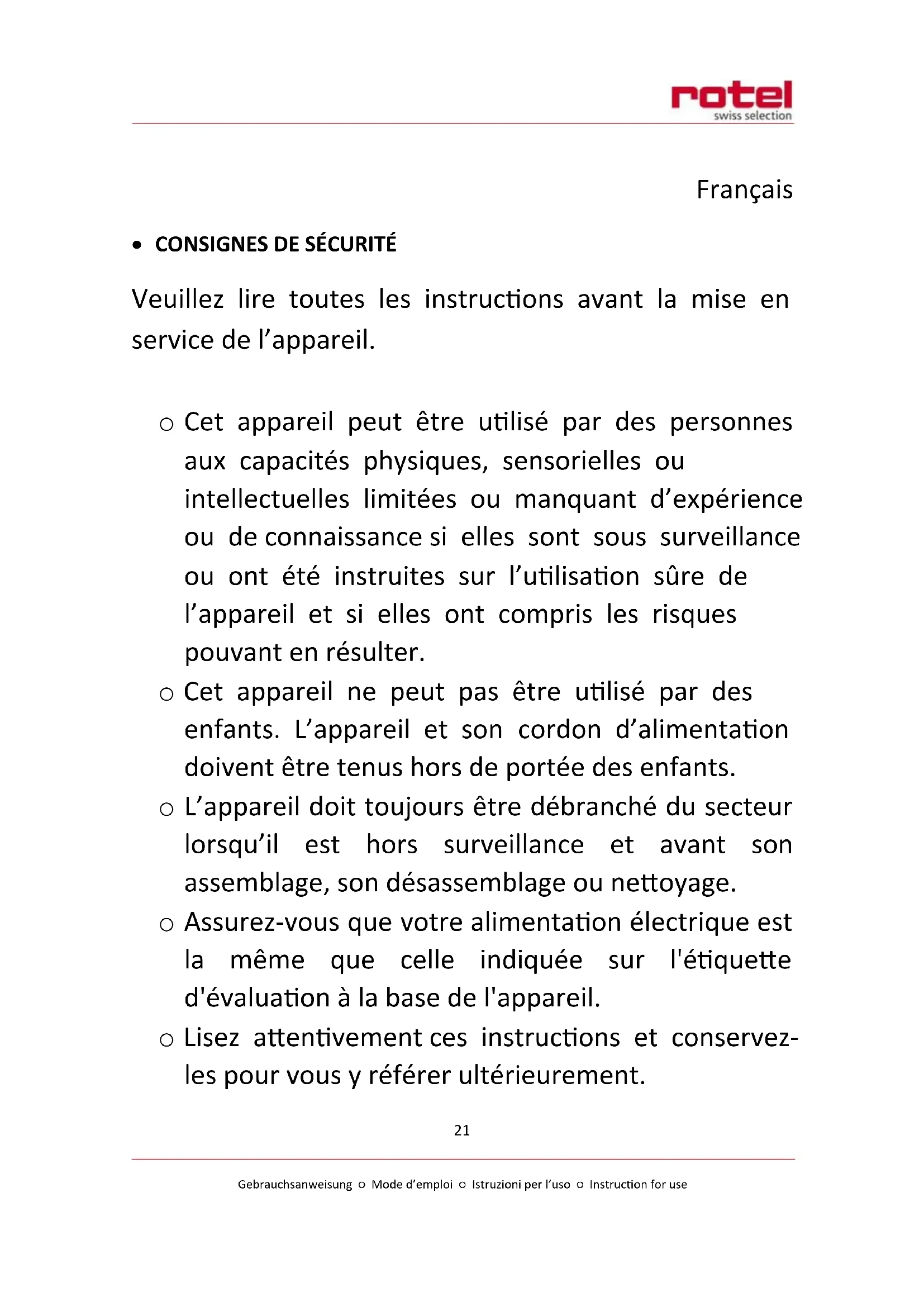 - Consignes de sécurité....21