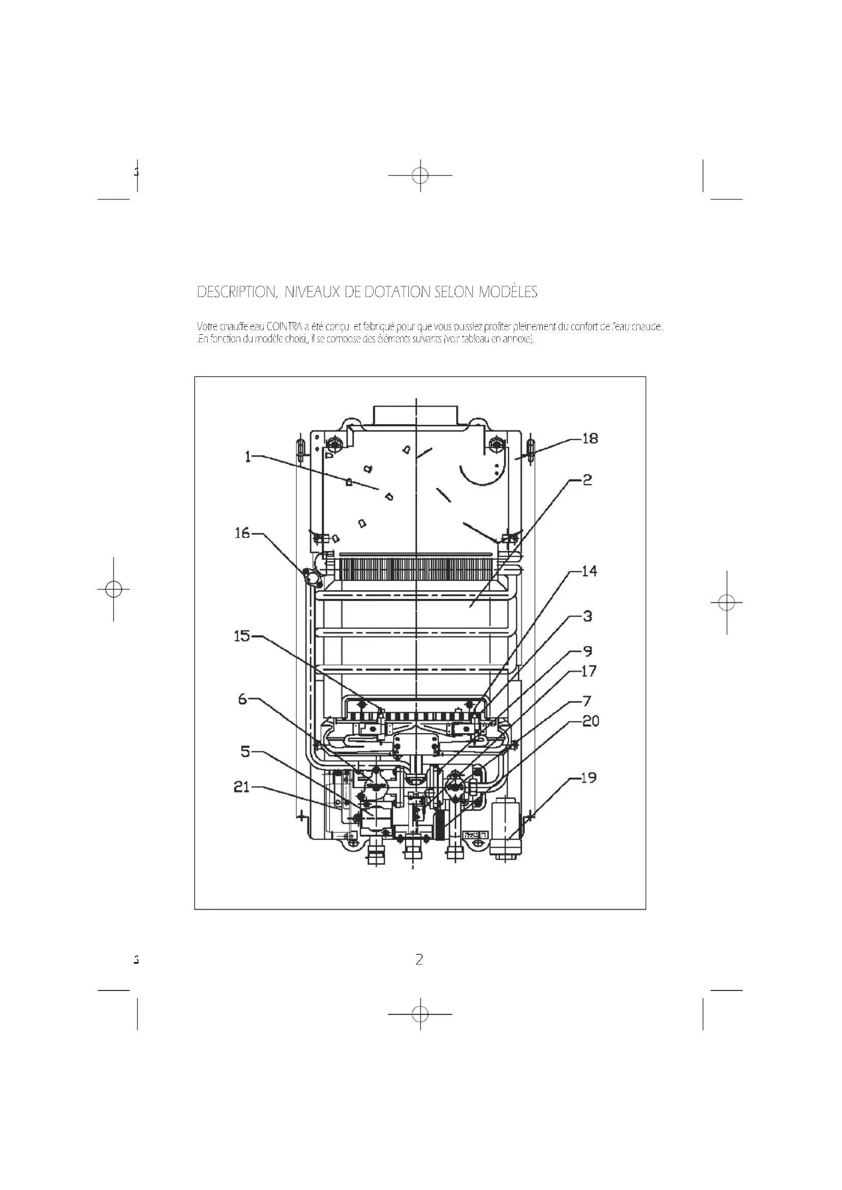Votre chauffe-eau COINTRA a été conçu et fabriqué pour que vous puissiez.profiter pleinement du confort de l'eau chaude.. .En fonction du modèle choisi,, il se compose des éléments suivants (voir tableau en annexe).3