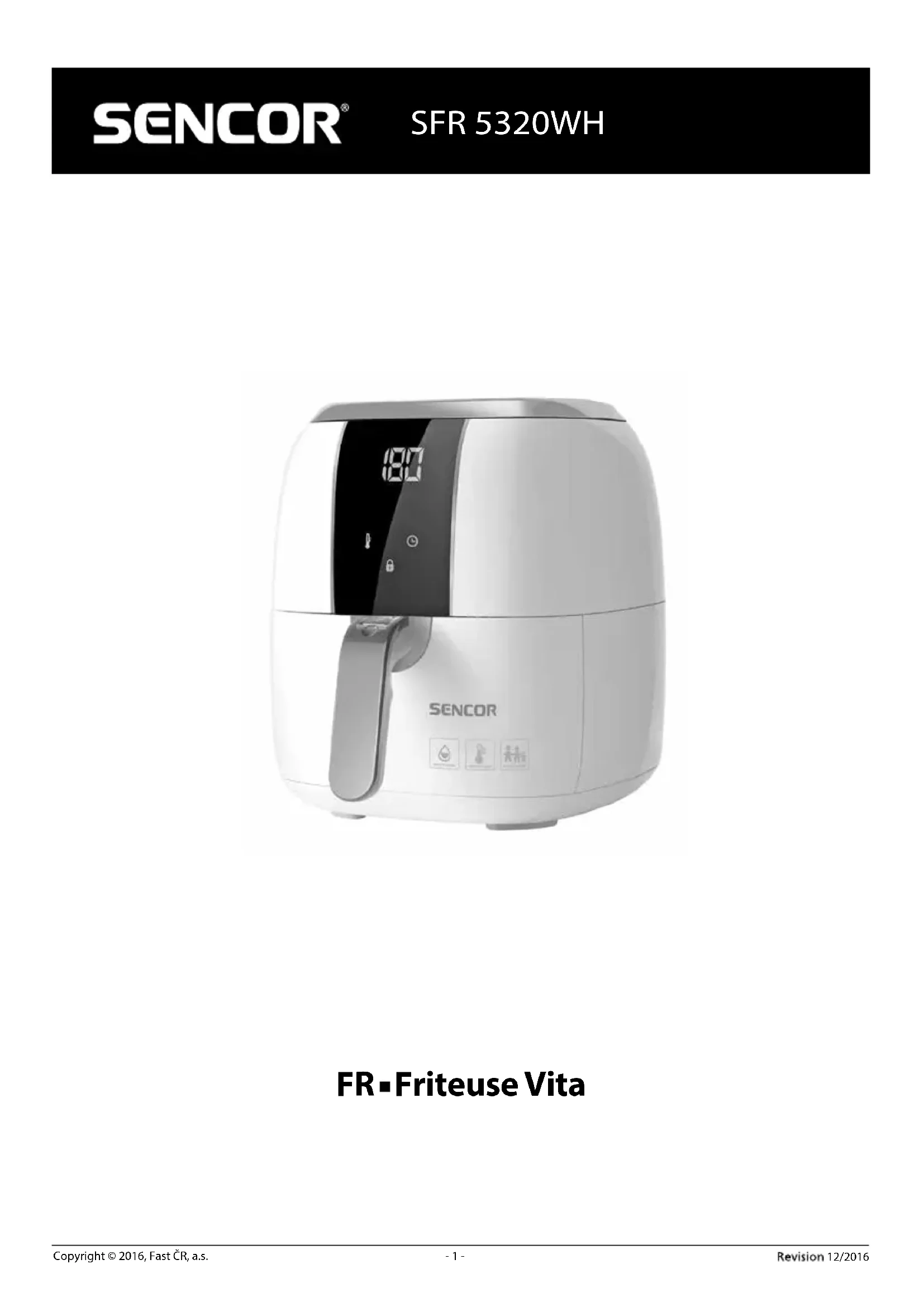 Téléchargez la notice de votre Friteuse au format PDF gratuitement ! Retrouvez votre notice SFR 5320WH - SENCOR et reprennez votre appareil électronique en main. Sur cette page sont publiés tous les documents nécessaires à l'utilisation de votre appareil SFR 5320WH de la marque SENCOR.