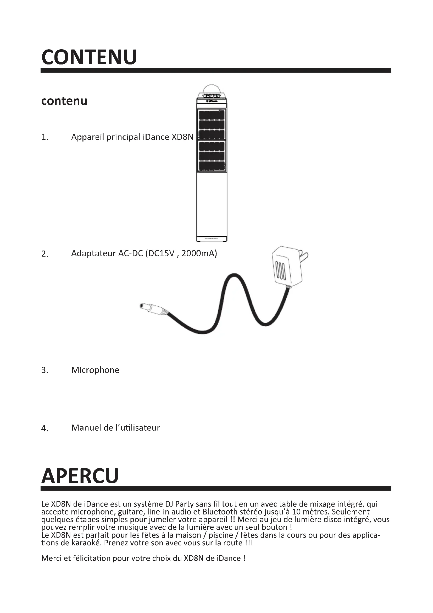 Merci et félicitation pour votrechoix du XD8N de iDance!
