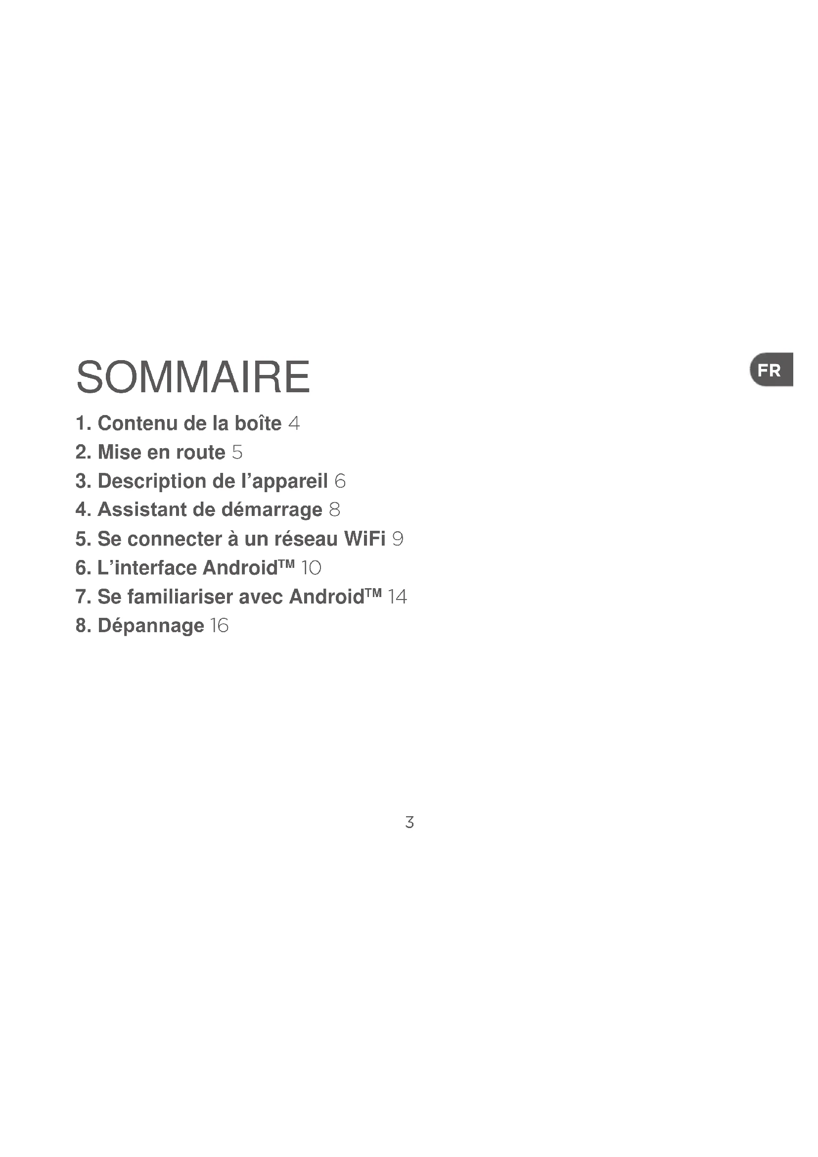 Tablette Câble USB Chargeur Guide d’utilisation rapide Consignes de sécurité et mentions légales Consignes