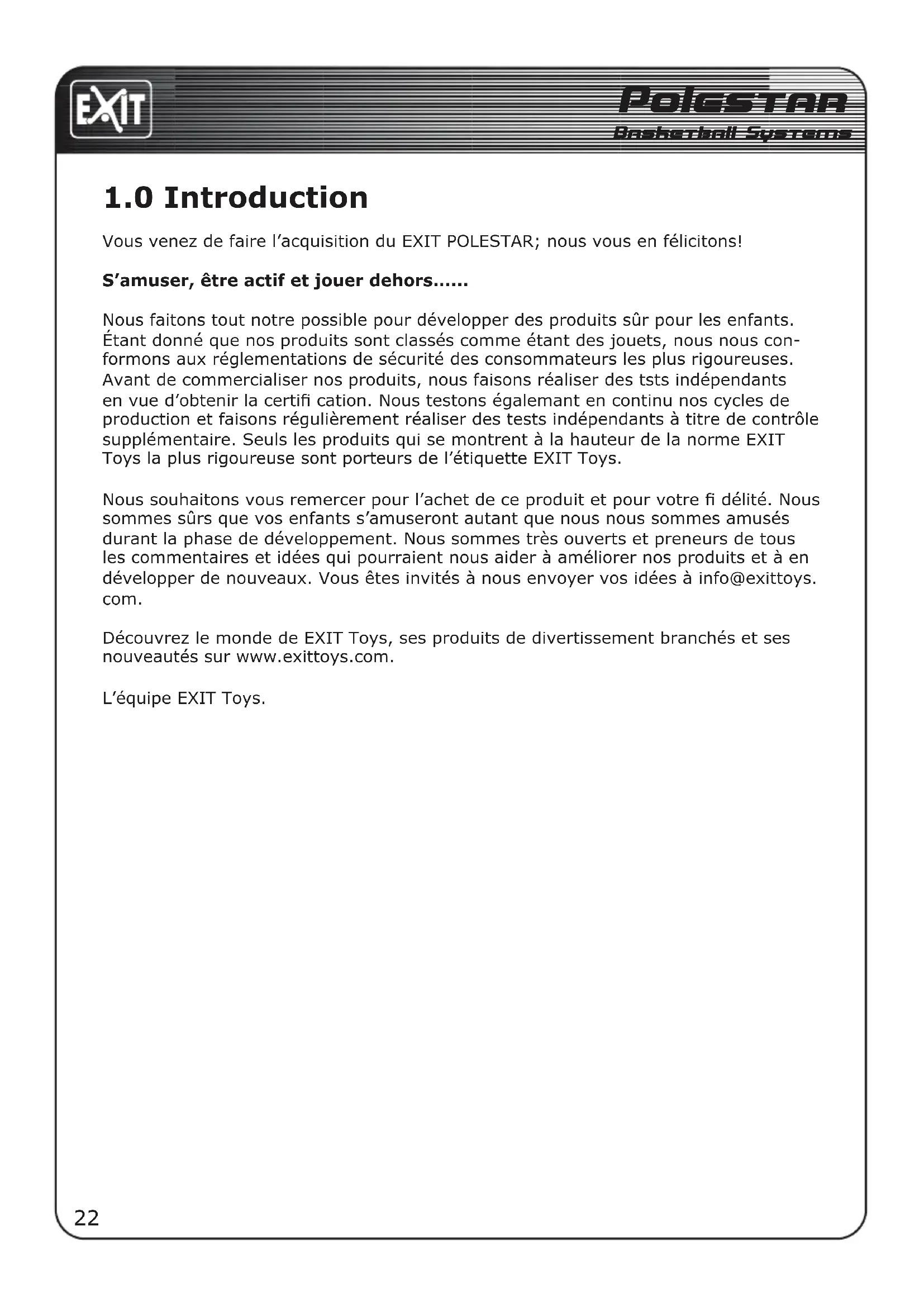 Polestar - Panier de basket-ball portable EXIT - Notice d'utilisation et mode d'emploi gratuit