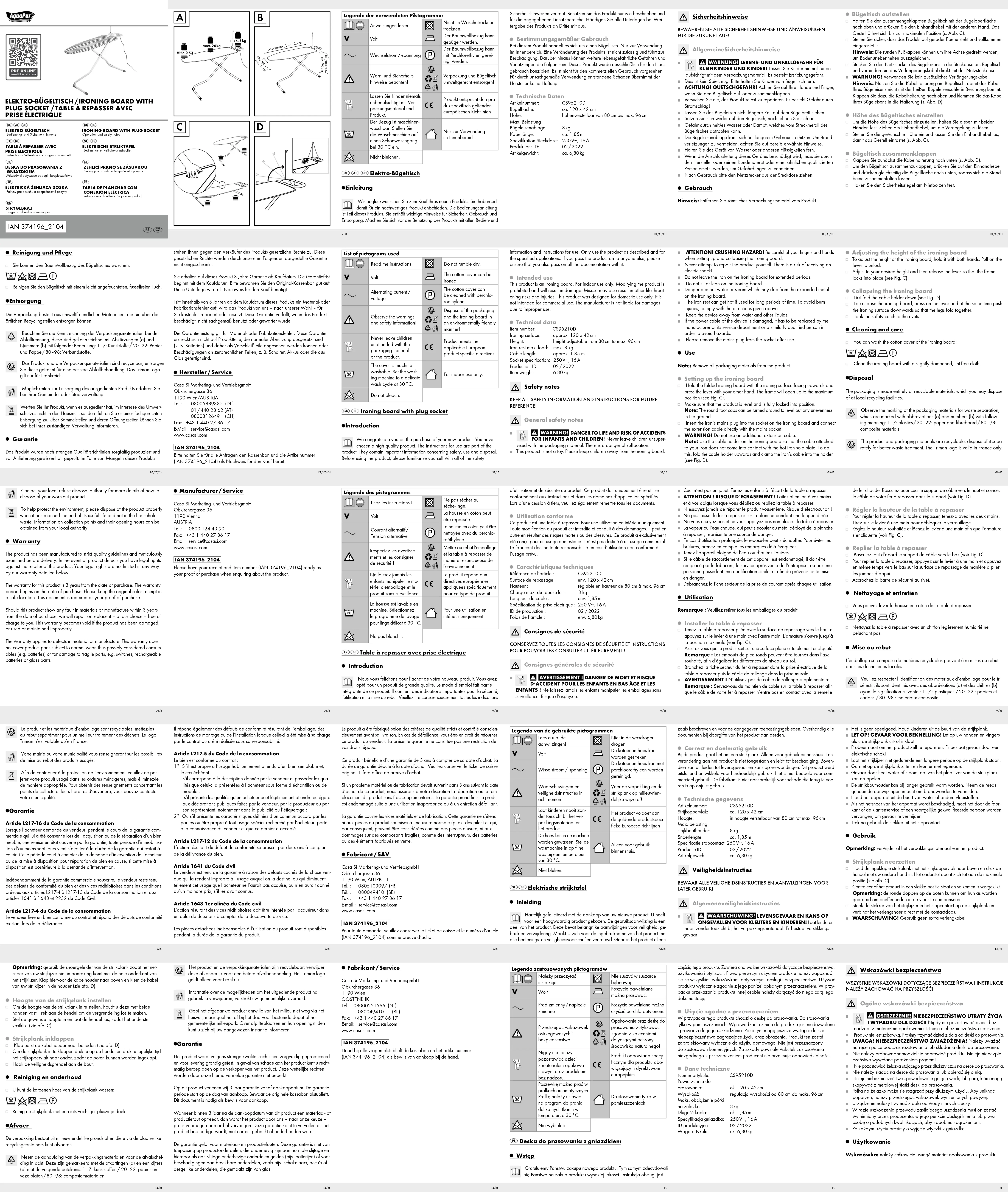 Ce produit est une table à repasser. Pour une utilisation en intérieur uniquement. Toute modification du produit est interdite et conduit à des dommages. Il peut en outre en résulter des risques mortels ou des blessures. Ce produit a exclusivement été conçu pour un usage domestique. Il n'est pas destiné à un usage commercial. Le fabricant décline toute responsabilité en cas d'utilisation non conforme à l'usage prévu.