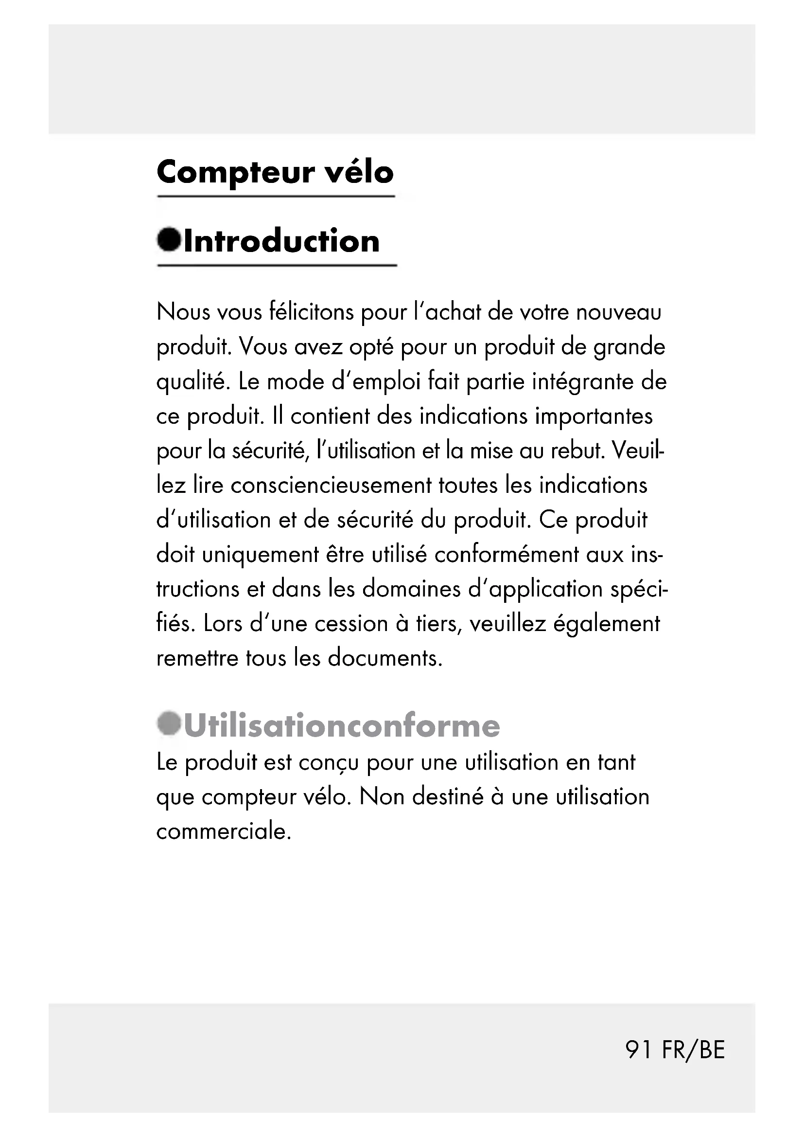 Le produit est concu pour une utilisation en tant que compteur vélo. Non destiné à une utilisation commerciale.