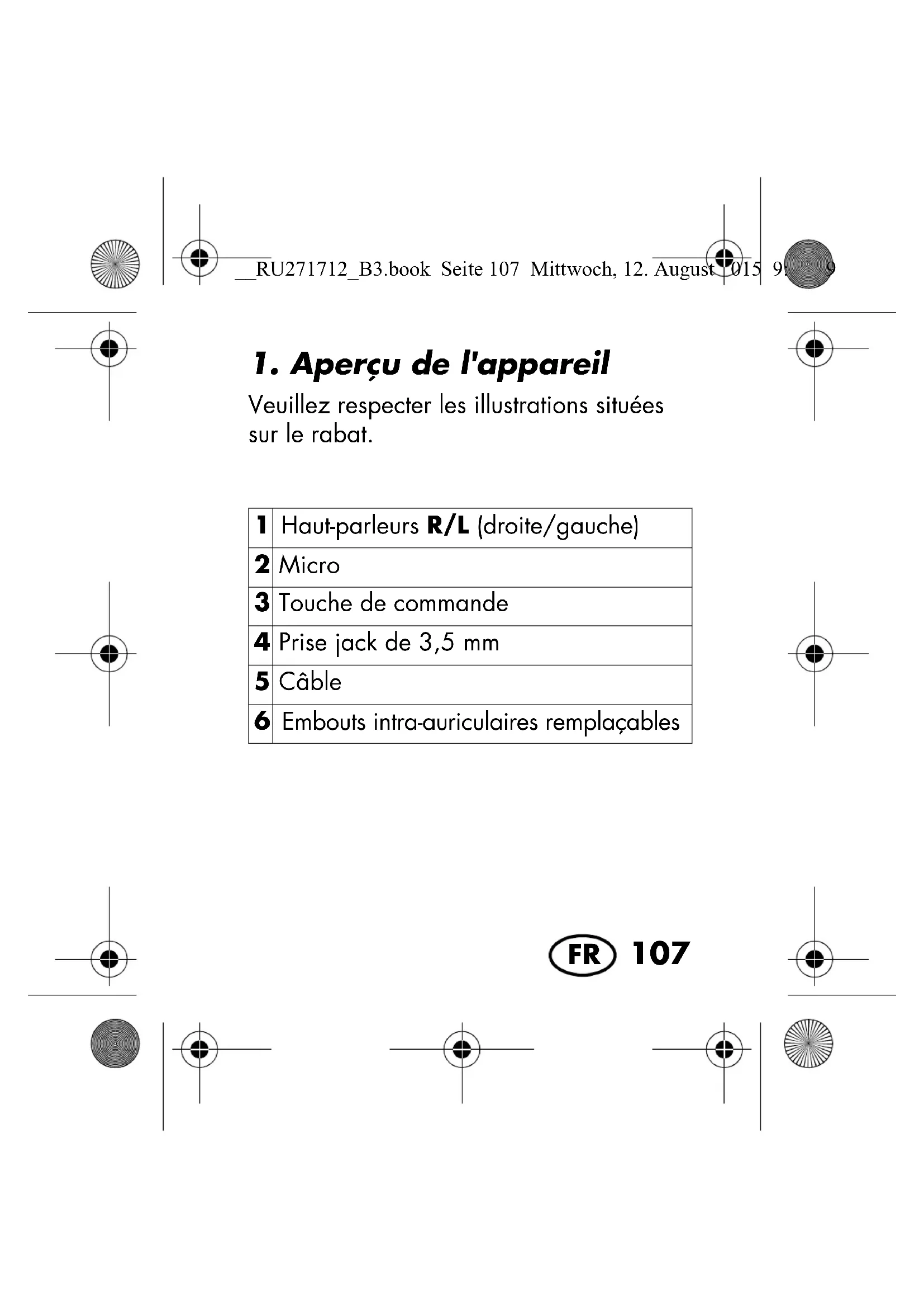 1. Aperçu de l'appareil ........... 107