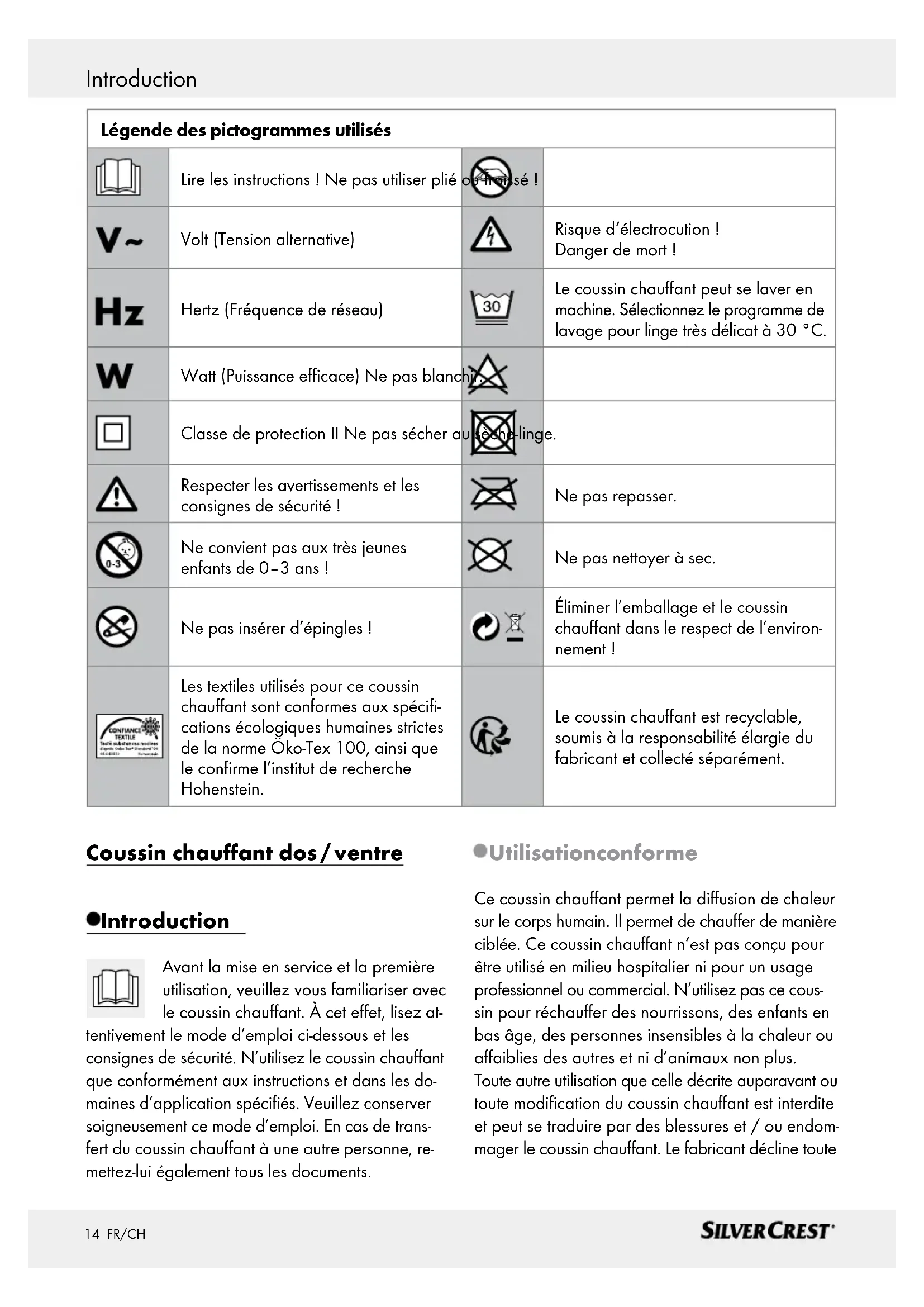 Avant la mise en service et la première utilisation, veuillez vous familiariser avec le coussin chauffant. À cet effet, lisez attentivement le mode d'emploi ci-dessous et les consignes de sécurité. N'utilisez le coussin chauffant que conformément aux instructions et dans les domaines d'application spécifiés. Veuillez conserver soigneusement ce mode d'emploi. En cas de transfert du coussin chauffant à une autre personne, remettez-lui également tous les documents.