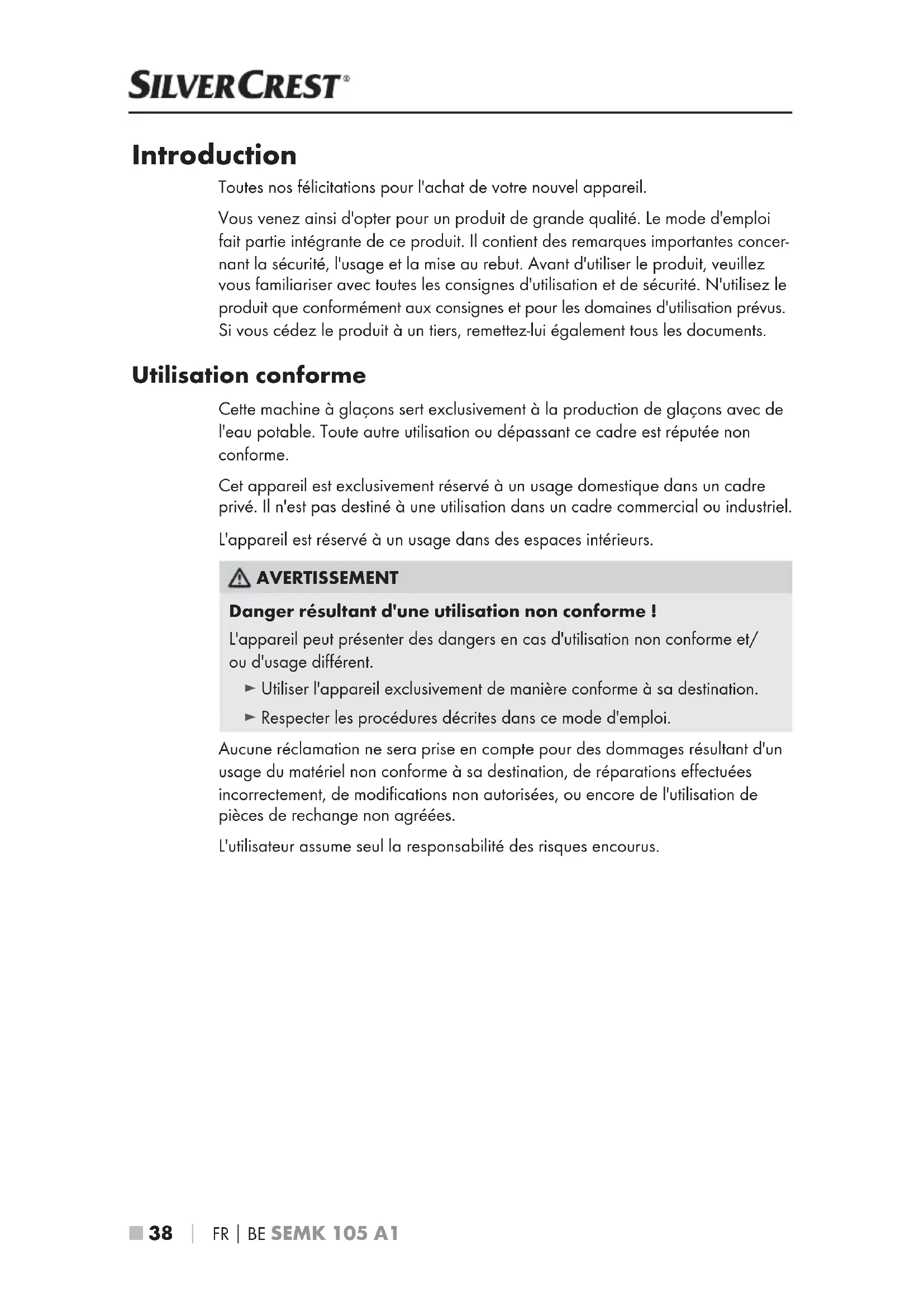 Utilisation conforme 38