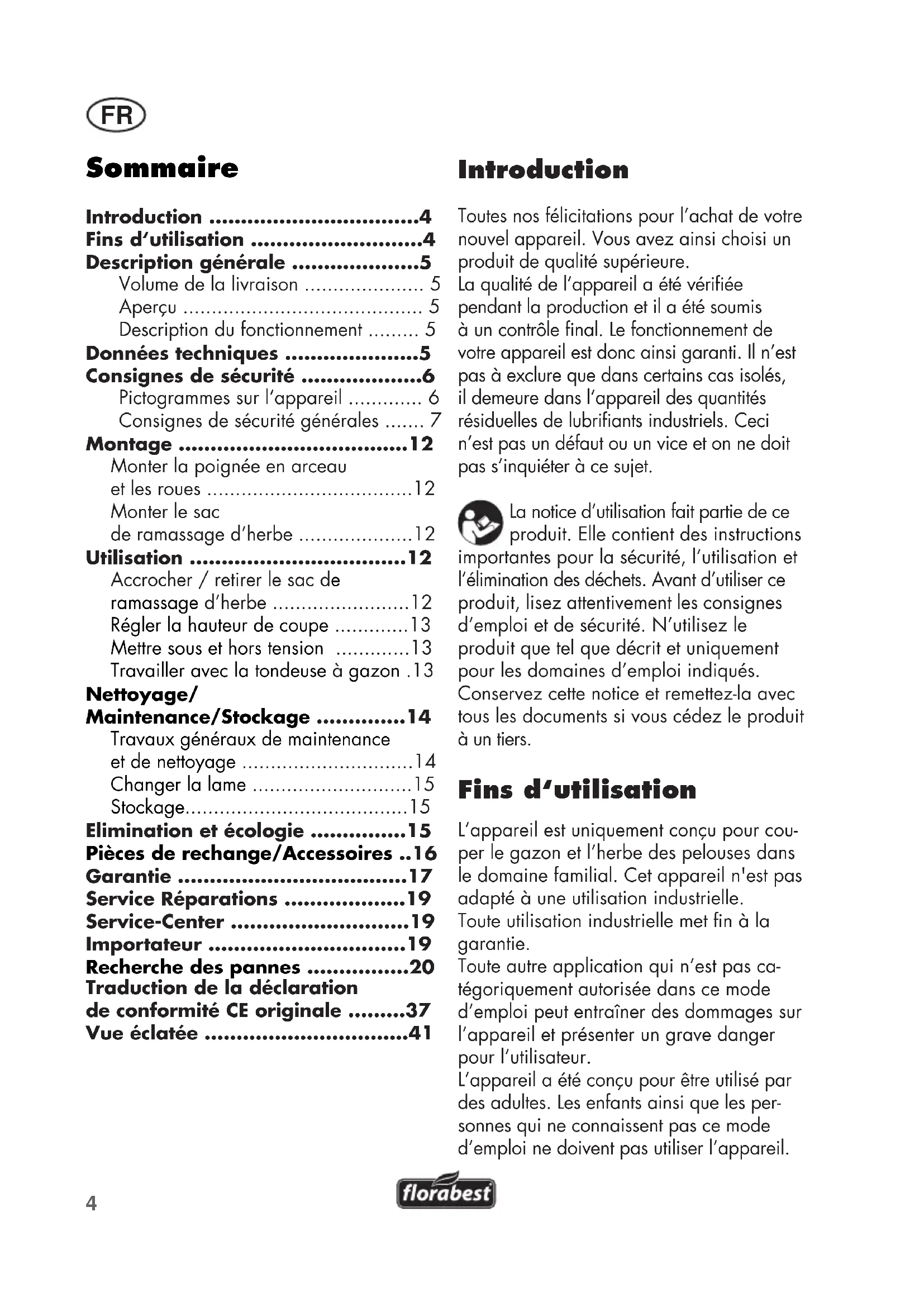 FRM 1200 D3 - Tondeuse à gazon FLORABEST - Notice d'utilisation et mode d'emploi gratuit