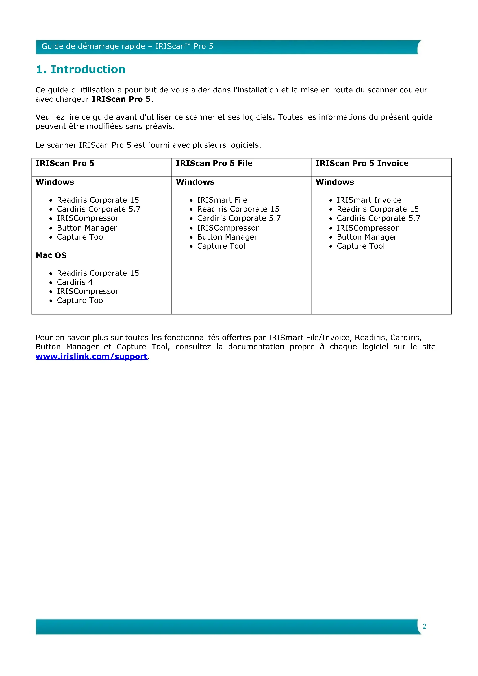 Pour en savoir plus sur toutes les fonctionnalités offertes par IRISmart File/Invoice, Readiris, Cardiris, Button Manager et Capture Tool, consultez la documentation propre à chaque logiciel sur le site www.irislink.com/support.
