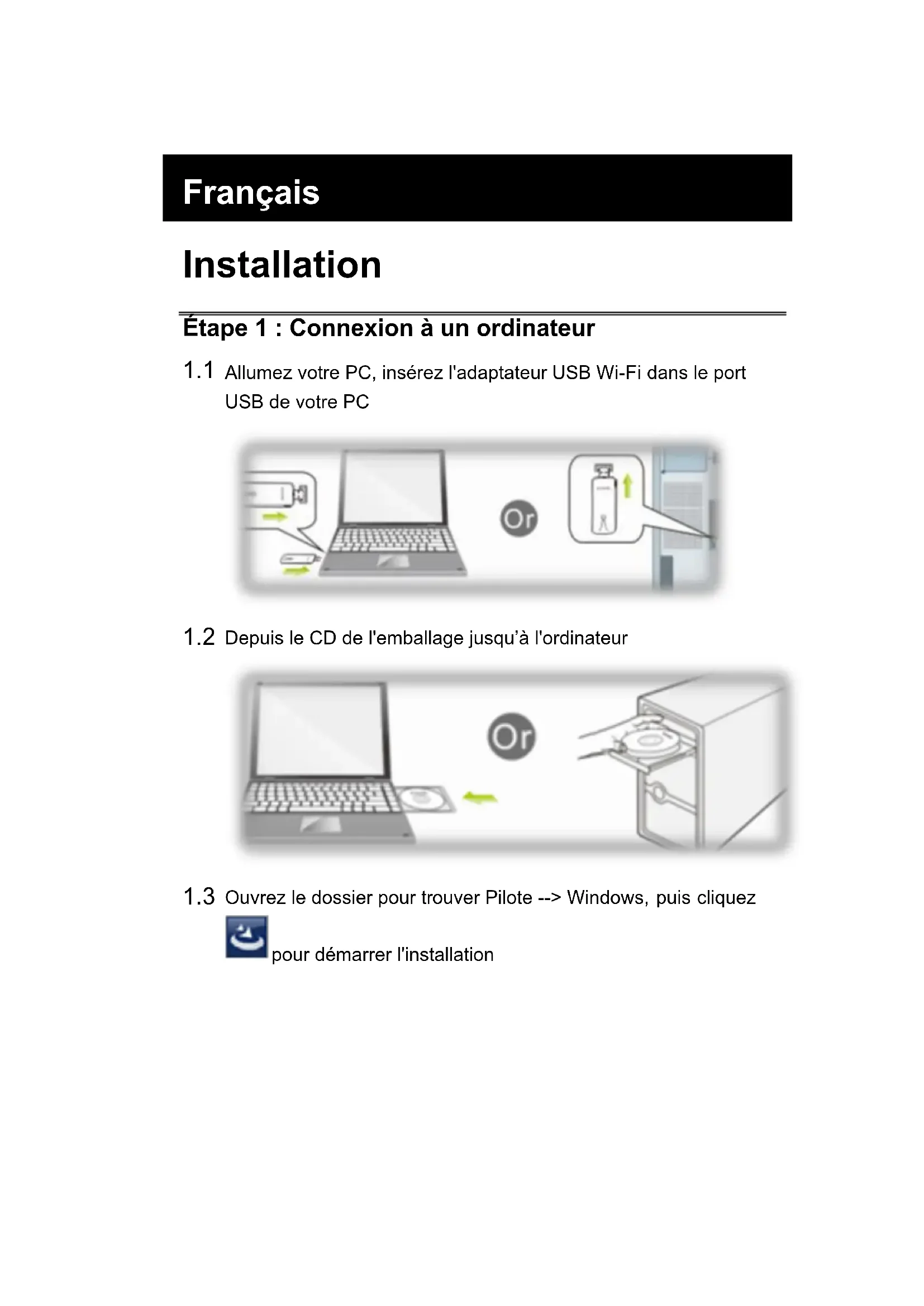 1.2 Depuis le CD de l'emballage jusqu'à l'ordinateur
