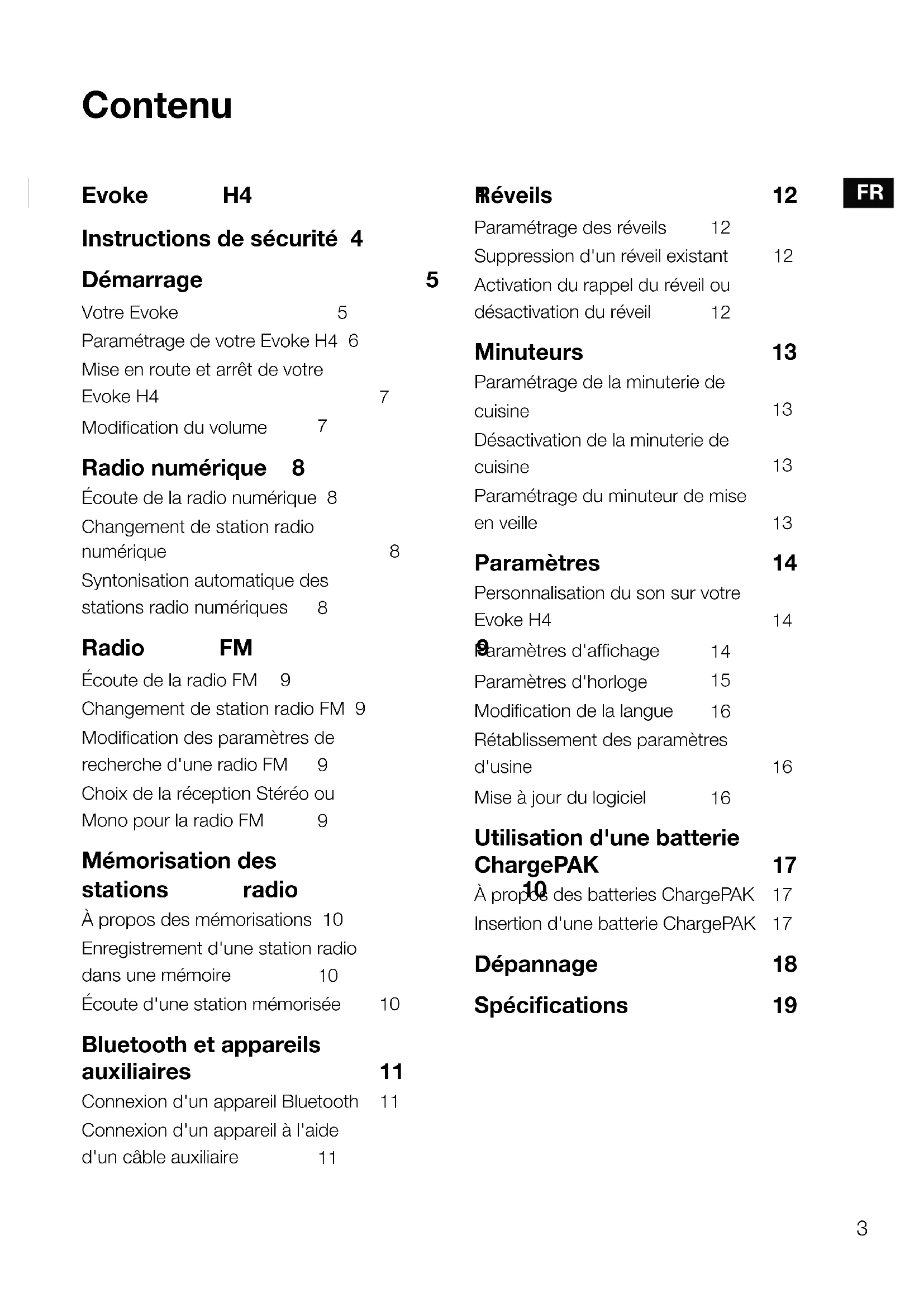 NL23 Contenu Evoke H4 1 Instructions de sécurité 4 Démarrage 5 Votre Evoke 5 Paramétrage de votre Evoke H4 6 Mise en route et arrêt de votre Evoke H4