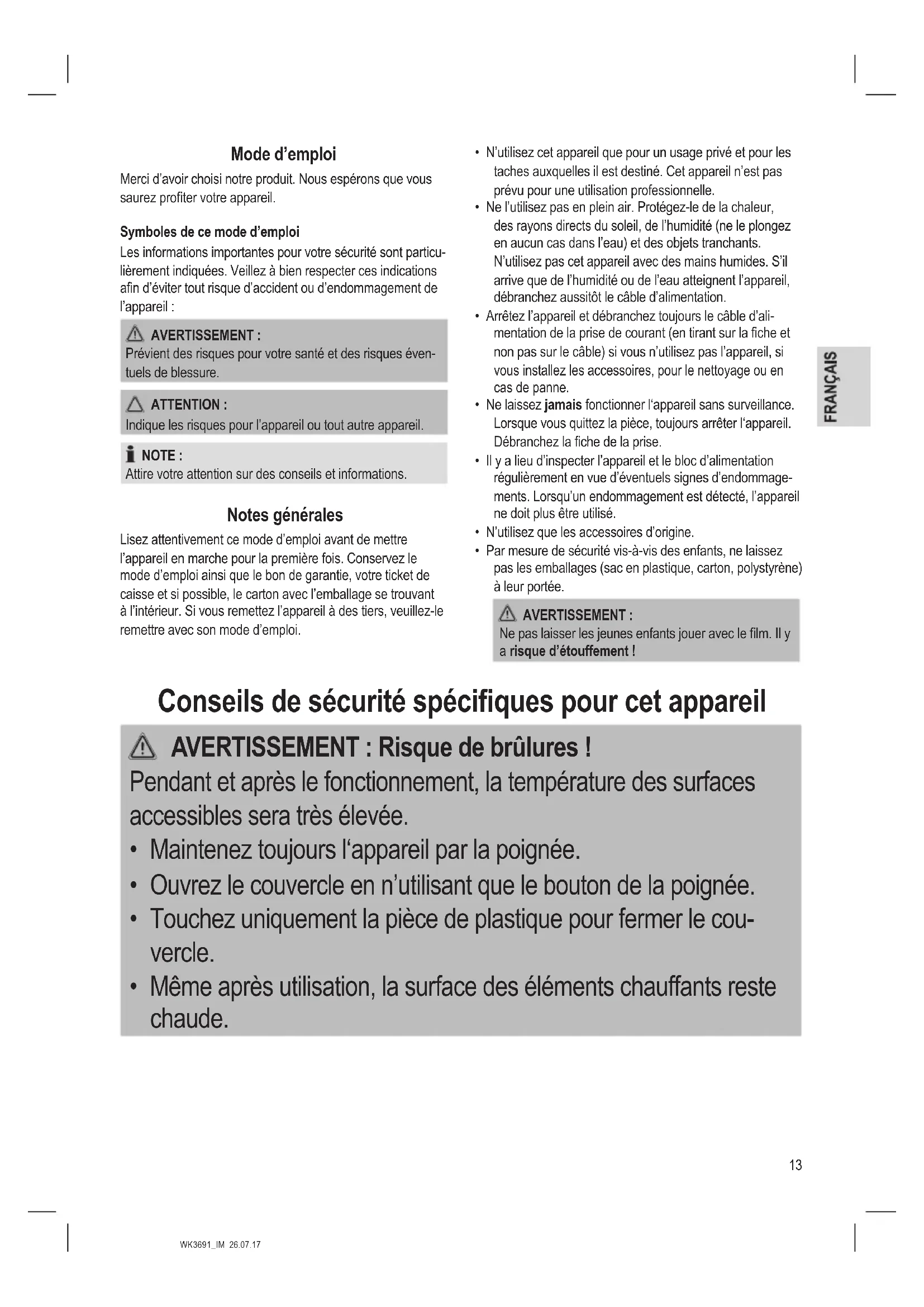 - Même après utilisation, la surface des éléments chauffants reste chaude.14 WK3691_IM 26.07.17