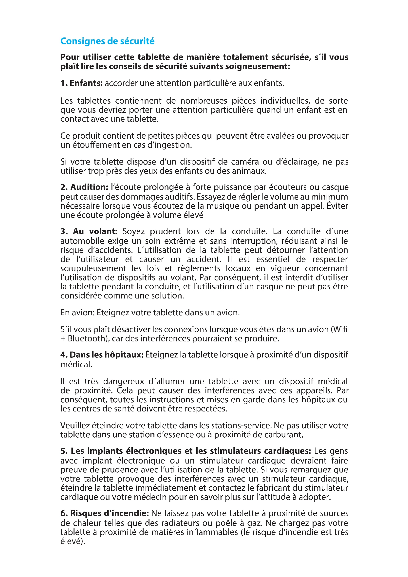 6. Risques d’incendie: Ne laissez pas votre tablette à proximité de sources