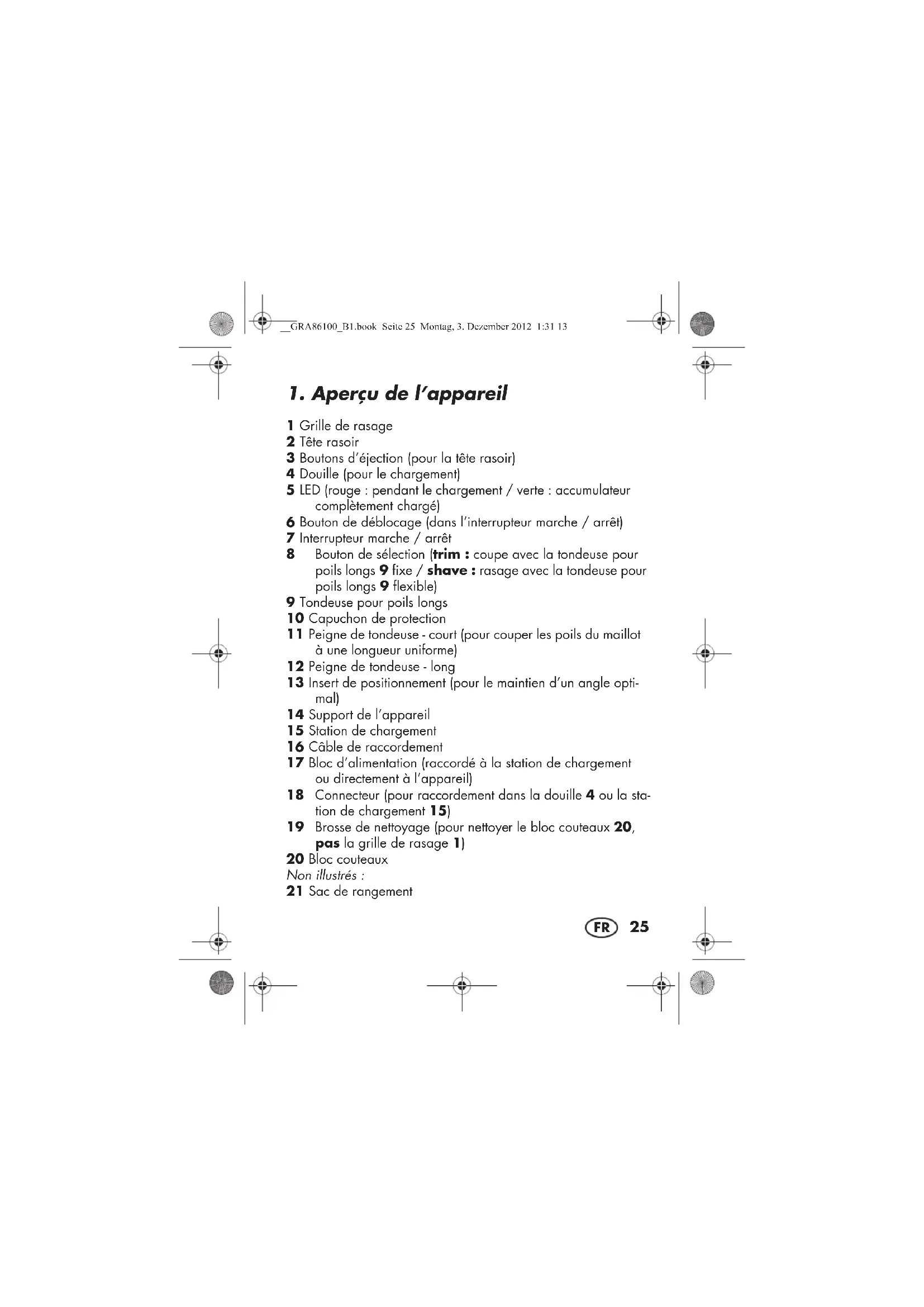 AVERTISSEMENT! N'utilisz pas l'appareil si la grille de rasage 1 est endommagée.