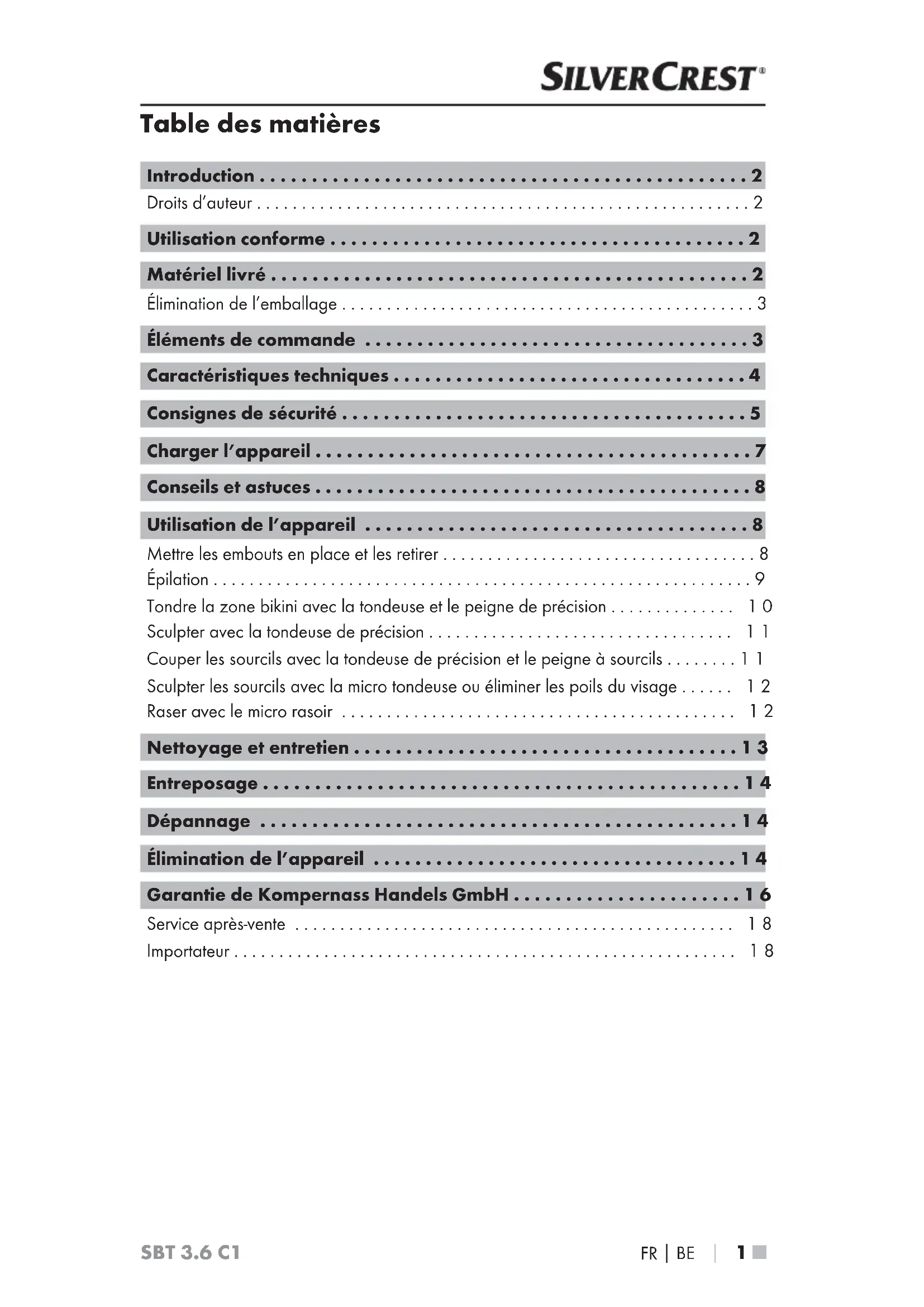 Retrouvez gratuitement la notice de l'appareil SBT 3.6 C1 SILVERCREST au format PDF.