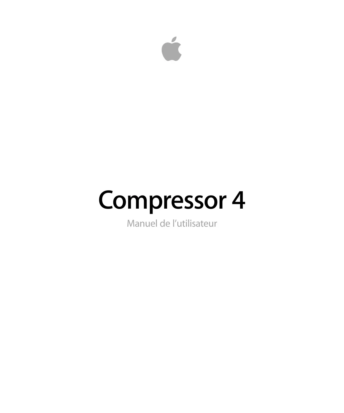 Vos droits sur le logiciel sont regis par l'accord de licence qui l'accompagne. Le propriété ou l'utiliser autorisé d'une copie valide du logiciel Compressor peut reproduire la presente publication dans le but d'appendre à utiliser ce logiciel. Aucune parte de la presente publication ne peut être reproductive ni transmise à des fins commerciales, comme, par exemple, la vente de copies de la presente publication ou pour la fourniture de services d'assistance payants.