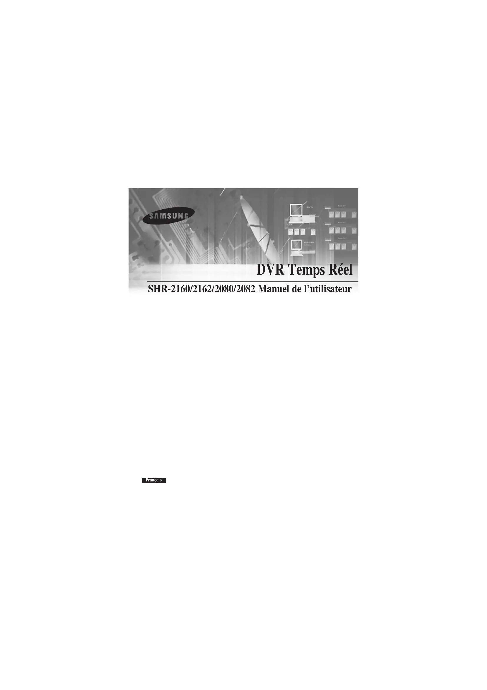 Caractéristiques 1-2 ■ Connecteurs d’entrée composite à 16 / 8 canaux■ Source vidéo compatible NTSC / PAL ( NTSC : SHR-2162, SHR-2160, SHR-2082, SHR-2080, SHR-2162N, SHR-2160N, SHR-2082N, SHR-2080N PAL: SHR-2162P, SHR-2160P, SHR-2082P, SHR-2080P ) ■ Possibilité d’enregistrer l’image vidéo de taille CIF (NTSC-352 x 240/PAL-352 x 288) à la vitesse de 120 ips(NTSC) / 100ips(PAL) (image par seconde) ■ Boucle de 16 / 8 canaux par connecteurs vidéo■ Mode refrappe du disque dur Hard Disk Overwrite Mode ■ Sauvegarde de disque dur de grande capacité à l’aide du câble USB2.0■ Fonction de sauvegarde à la mémoire USB2.0 et graveur externe du CD/DVD (SHR-2162 / 2082 supporte l’interne CD-RW.) ■ Possibilité d’enregistrer, lire et transmettre simultanément les fichiers audio / video vers Windows Network Viewer (Smart Viewer) ■ Enregistrement du canal vidéo 16 / 8, fonction Enregistrement / Lecture■ Divers modes de recherche (Heure/Date, Evènement, Caméra)■ Divers modes d’enregistrement (Durée, Evènement, Programmation)■ Connexion de disques durs externes (USB2.0)■ Interface d’alarme (16 / 8 entrées, 4 sorties, 1 reset)■ Surveillance à distance par Windows Network Viewer (Smart Viewer) Français SHR-2160/2162/2080/2082 MANUEL DE L’UTILISATEURFrançais Français 1-4