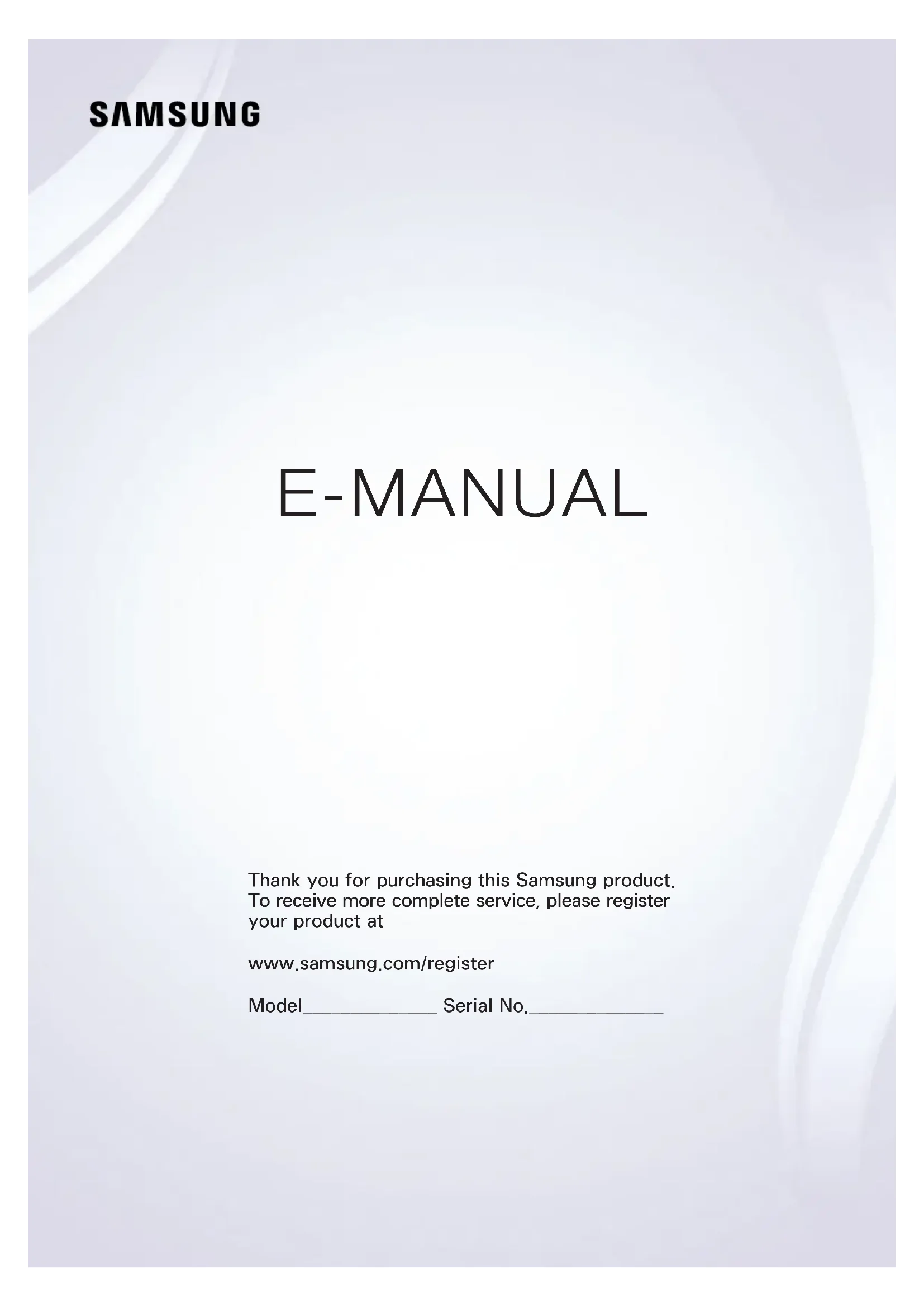 E-MANUAL Thank you for purchasing this Samsung product. To receive more complete service, please register your product at www.samsung.com/register Model______________ Serial No.______________Contents Guides de démarrage Utilisation de Smart Hub 1 Connexion à Internet 1 Configuration de Smart Hub 1 Utilisation de Smart Hub Commande vocale du téléviseur 2 Configuration de Reconnaissance vocale 3 Commande vocale du téléviseur Commande par mouvement du téléviseur 4 Configuration de Commande par mouv. 5 Contrôle du téléviseur à l'aide de gestes Utilisation du Samsung Smart Control 6 Utilisation du téléviseur avec le bouton POINTER 7 Configuration du Samsung Smart Control 7 Pairage du téléviseur au Samsung Smart Control Amélioration de l'expérience visuelle des événements sportifs 8 Activation de la fonction Mode Sport Modification des chaînes 9 Activation de la fonction Modifier la chaîne 9 Réorganisation ou suppression de chaînes Lecture de plusieurs écrans Connexions Raccordement d'une antenne (Antenne) Connexion à Internet 12 Mise en place d'une connexion câblée à Internet 13 Mise en place d'une connexion sans fil à Internet Connexion à un réseau au moyen d'un dongle mobile Résolution des problèmes de connectivité Internet 16 Résolution des problèmes de connectivité Internet câblée 17 Résolution des problèmes de connectivité Internet sans fil Connexion de périphériques vidéo 18 Connexion à l'aide d'un câble HDMI 19 Connexion à l'aide d'un câble composant 20 Connexion à l'aide d'un câble composite (A/V) Connexions d'entrée et de sortie audio 21 Connexion à l'aide d'un câble HDMI (ARC) 22 Connexion à l'aide d'un câble audio numérique (optique) 22 Branchement d'un casque Connexion à un ordinateur 23 Connexion via le port HDMI 24 Connexion à l'aide d'un câble HDMI vers DVI 24 Connexion via votre réseau domestique Connexion d'un périphérique mobile 25 Connexion à l'aide d'un câble MHL vers HDMI 26 Utilisation de Réplication de l'écran 27 Connexion de périphériques mobiles sans routeur sans fil (Wi-Fi Direct) 28 Connexion d'un périphérique mobile via Samsung Smart View Pairage d'un ordinateur portable et du téléviseur - Mise en miroir de PC sans fil (ou KINO TV) Modification du signal d'entrée avec des périphériques externes Remarques sur la connexion 30 Remarque sur la connexion HDMI 31 Remarque sur la connexion des périphériques audio 31 Remarque sur la connexion des ordinateurs 32 Remarque sur la connexion des périphériques mobiles 32 Remarques concernant la connexion pour la mise en miroir de PC sans fil (ou KINO TV) Télécommande et périphériques À propos du Samsung Smart Control Utilisation du Samsung Smart Control 35 Utilisation du téléviseur avec le bouton POINTER 35 Utilisation du téléviseur avec les touches de direction et le bouton Entrer 36 Affichage et utilisation de la télécommande visuelle 37 Pairage du téléviseur au Samsung Smart Control IICommande des périphériques externes à l'aide de la télécommande du téléviseur - Utilisation de la télécommande universelle 38 Réglage de la télécommande universelle Commande du téléviseur à l'aide d'un clavier 39 Connexion d'un clavier 40 Utilisation du clavier Commande du téléviseur à l'aide d'une souris 41 Connexion d'une souris USB 41 Utilisation d'une souris Connexion d'une manette Bluetooth Saisie de texte à l'aide du clavier QWERTY à l'écran 43 Utilisation des autres fonctions Fonctions Smart Affichage de plusieurs écrans ou fonctions avec Multi-Link Screen 44 Utilisation de Multi-Link Screen Smart Hub 46 Supprimer ou épingler un élément dans le groupe Récente 46 Lancement automatique de Smart Hub 46 Test des connexions Smart Hub 47 Utilisation du didacticiel Smart Hub 47 Réinitialisation de Smart Hub Utilisation de Smart Hub avec un Compte Samsung 48 Création d'un compte Samsung 49 Ouverture d'un compte Samsung 49 Association de votre compte Samsung à vos comptes de services externes 50 Modification et ajout d'informations à un compte Samsung 50 Suppression d'un compte Samsung du téléviseur Utilisation du service GAMES 51 Gestion des jeux via le menu contextuel Options 51 Affichage de l'écran d'informations détaillées 52 Installation et exécution d'un jeu 52 Gestion des jeux téléchargés ou achetés Utilisation du service Mes Applications 54 Gestion des applications téléchargées avec le menu contextuel Options 55 Installation d'une application 55 Activation des mises à jour automatiques des applications 55 Suppression d'une application du téléviseur 56 Déplacement des applications 56 Verrouillage et déverrouillage des applications 56 Mise à jour des applications 56 Réorganisation des applications 56 Notation des applications achetées 56 Utilisation des autres caractéristiques et fonctions de l'application Utilisation de l'e-Manual 57 Lancement du manuel électronique 57 Utilisation des boutons du manuel électronique Utilisation du navigateur Web. 58 Préférences de navigation Utilisation du service MON CONTENU 59 À lire avant de lire du contenu multimédia 60 Lecture de contenu multimédia sur un ordinateur ou un périphérique mobile 60 Lecture de contenu multimédia enregistré sur un périphérique USB 61 Boutons et fonctions disponibles pendant le visionnage de photos 63 Boutons et fonctions disponibles pendant le visionnage de vidéos 65 Boutons et fonctions disponibles pendant la lecture de musique 66 Écoute de musique en qualité HD 66 Fonctions de l'écran de liste de contenu multimédia Utilisation du service NewsON 67 Actualités 67 Météo Commande vocale du téléviseur 69 À lire avant d'utiliser la fonction de reconnaissance vocale 69 Apprentissage des principes de base de la reconnaissance vocale 70 Utilisation de la reconnaissance vocale impérative 70 Utilisation de la reconnaissance vocale interactive à une courte distance 70 Utilisation du didacticiel de reconnaissance voca