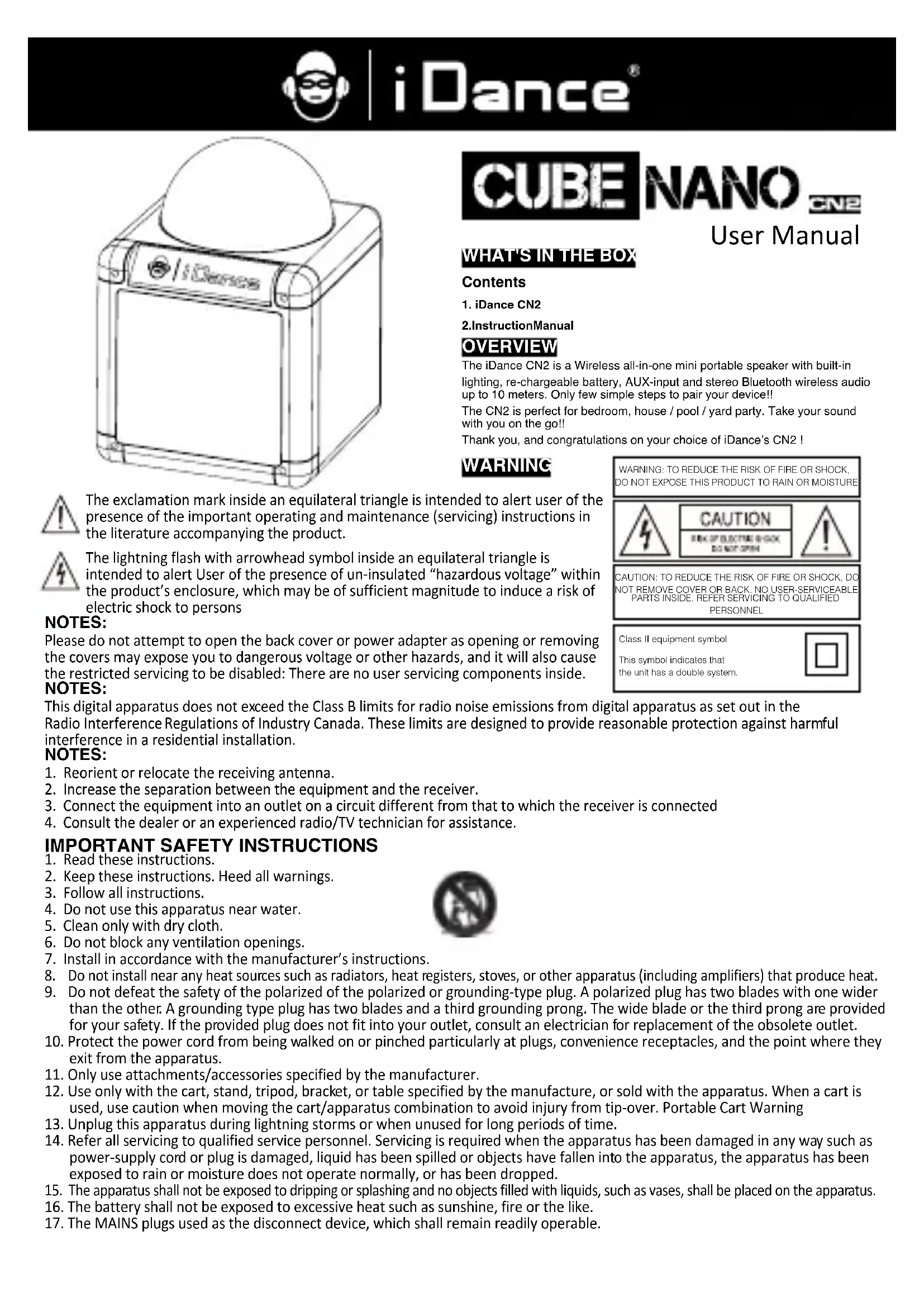 Retrouvez gratuitement la notice de l'appareil Cube Nano iDance au format PDF.
