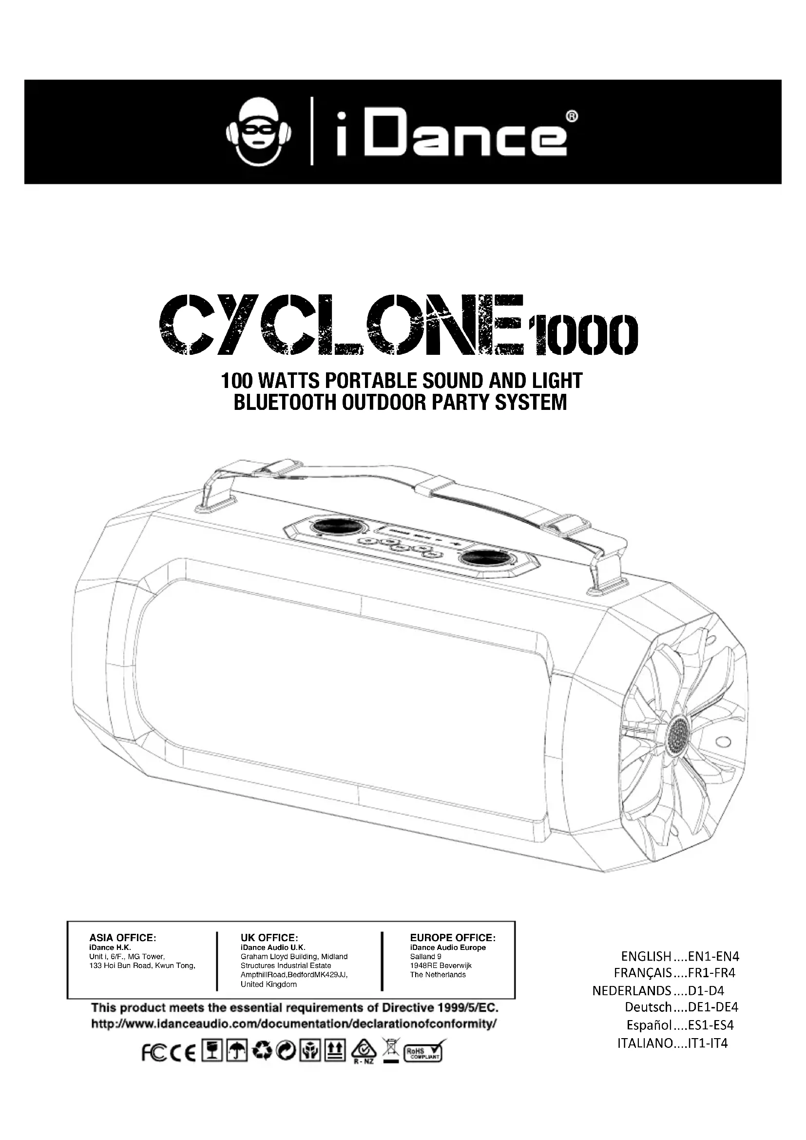 Cyclone 1000 - Station d'acceuil iDance - Notice d'utilisation et mode d'emploi gratuit