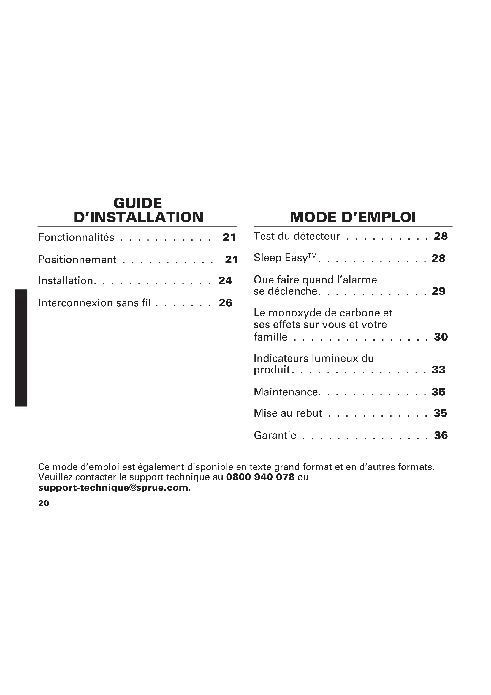 Sprue Safety Products Ltd garantit à l'acquéreur d'origine que le détecteur est exempt de tout défaut matériel et de fabrication dans le cadre d'une utilisation domestique et dans des conditions normales pour une période de 5 (cinq) ans à compter de la date d'achat. Sprue Safety Products Ltd garantit accepter de remplacer, à sa discrétion, l'appareil sans frais sur une période de 5 (cinq) ans à compter de la date d'achat, à condition que le produit soit retourné au revendeur avec une preuve d'achat datée.