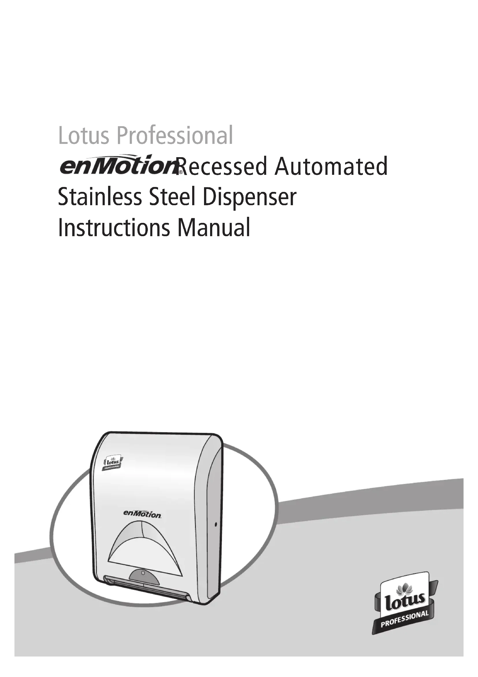 Téléchargez la notice de votre Distributeur automatique au format PDF gratuitement ! Retrouvez votre notice EnMotion Recessed - Lotus et reprennez votre appareil électronique en main. Sur cette page sont publiés tous les documents nécessaires à l'utilisation de votre appareil EnMotion Recessed de la marque Lotus.