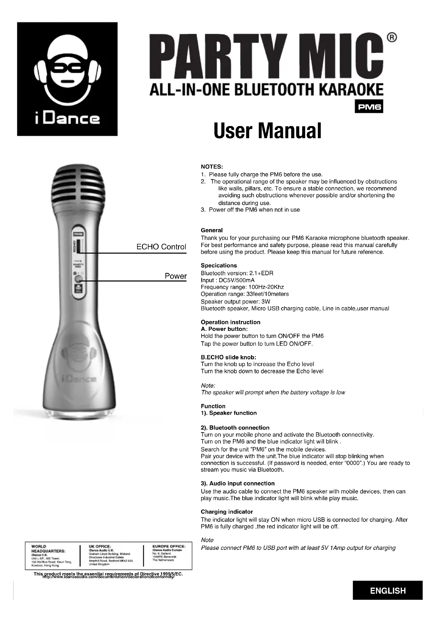 Party Mic PM6 - Microphone iDance - Notice d'utilisation et mode d'emploi gratuit