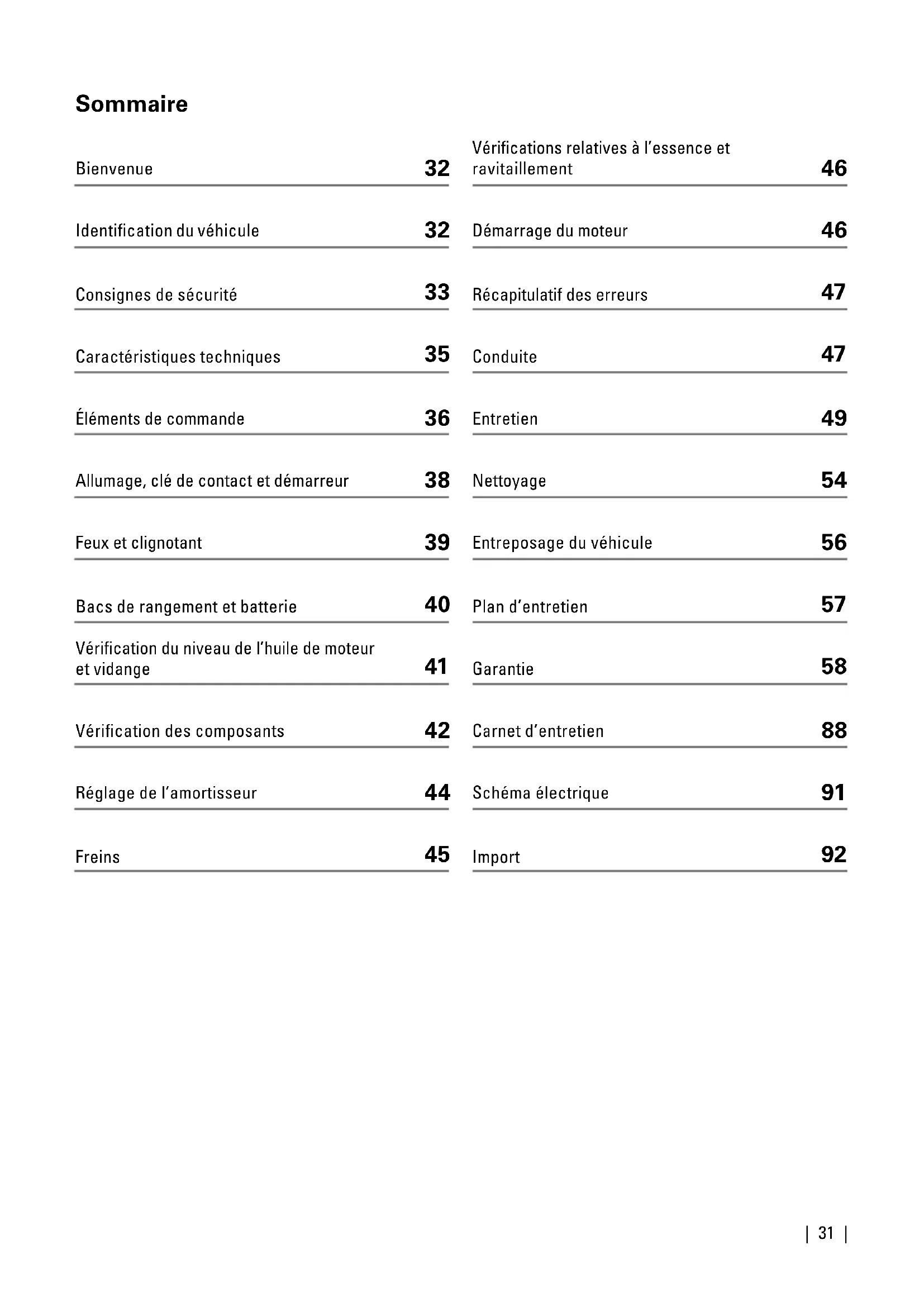 - L'etat de fonctionnement du vehicule doit etre contrôlé avant chaque trajet (voir page 42) et tous les défauts existants doivent etre éliminés.