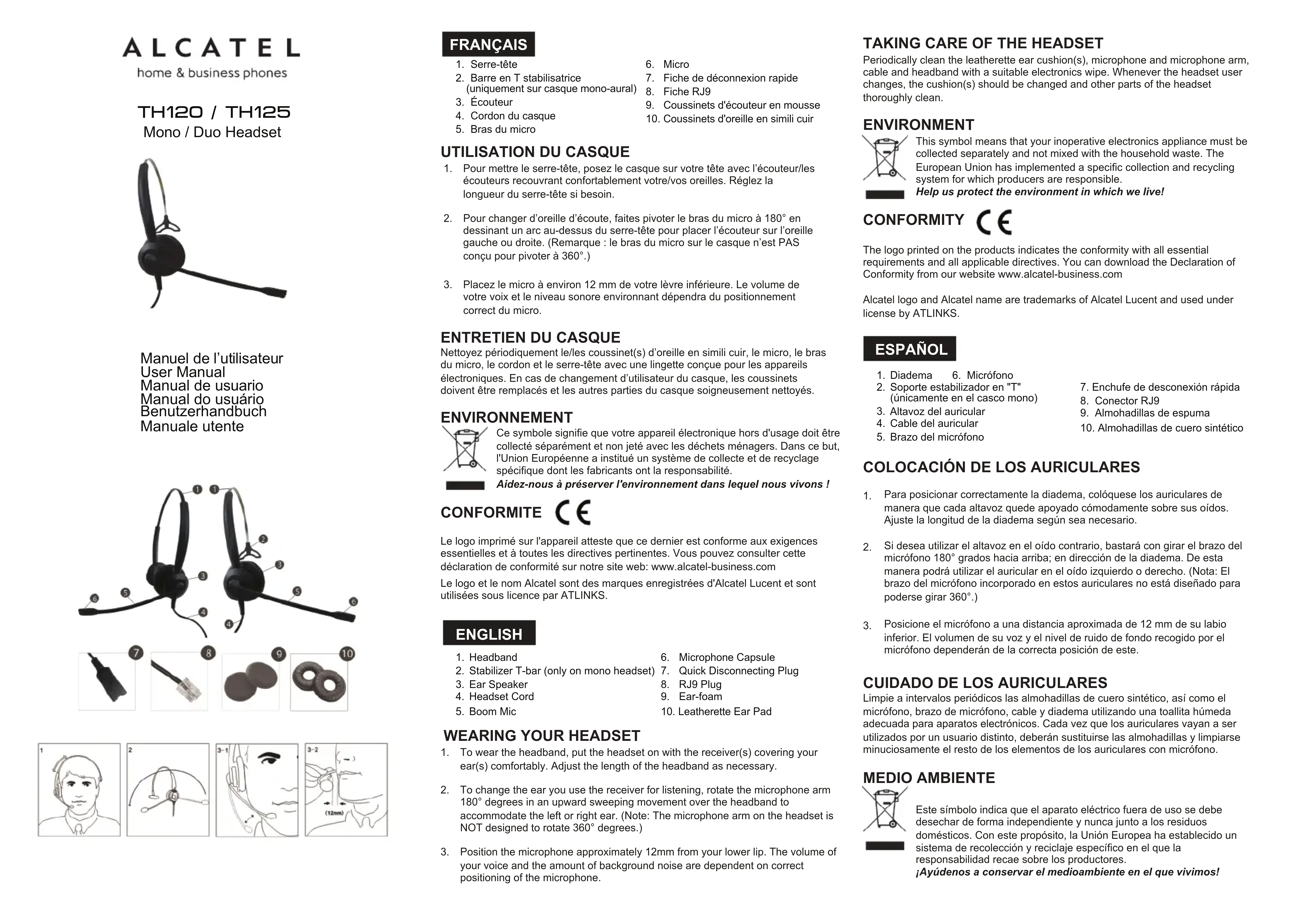TH125 - Casque ALCATEL - Notice d'utilisation et mode d'emploi gratuit