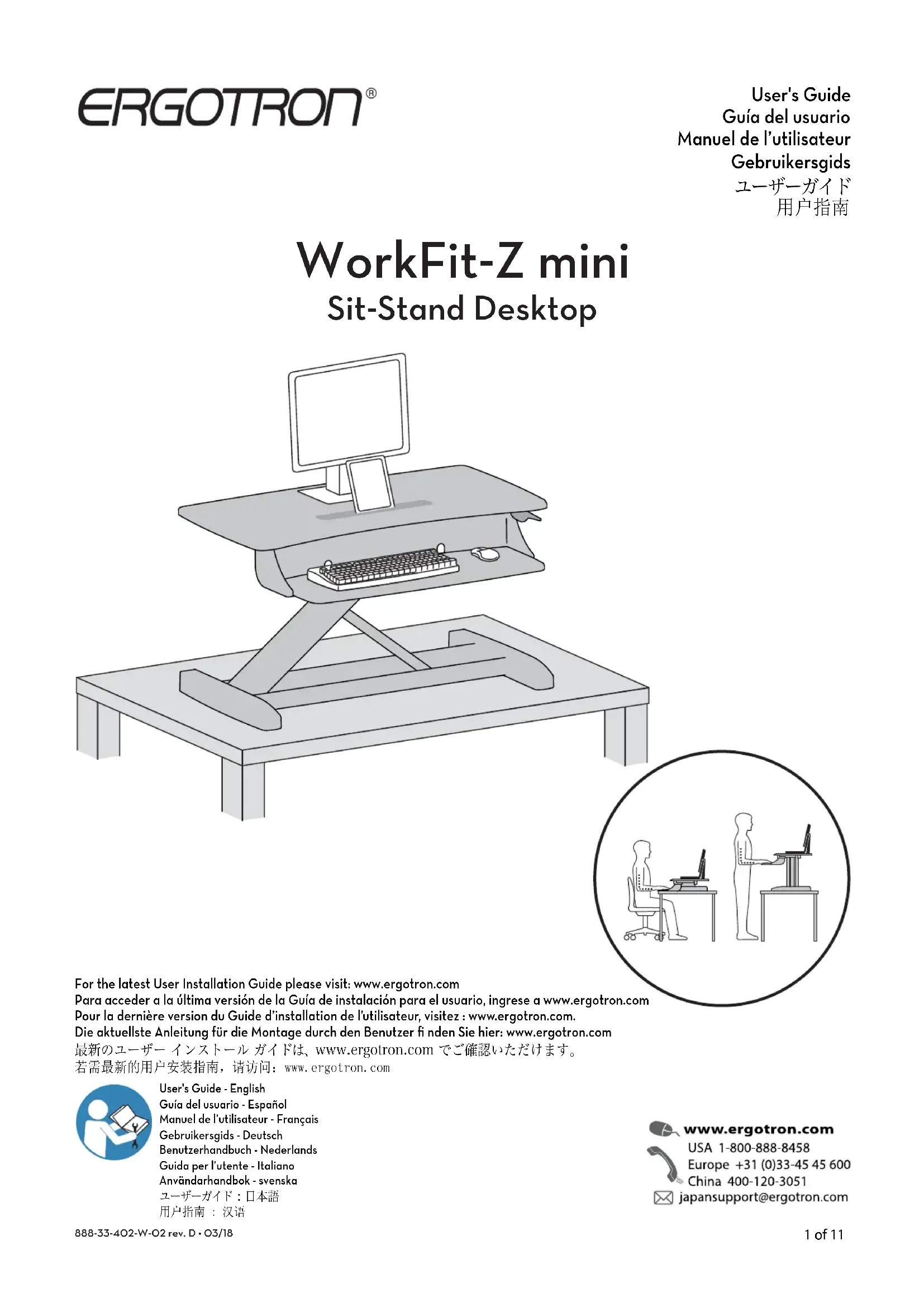 WorkFitZ Mini - Bureau Ergotron - Notice d'utilisation et mode d'emploi gratuit