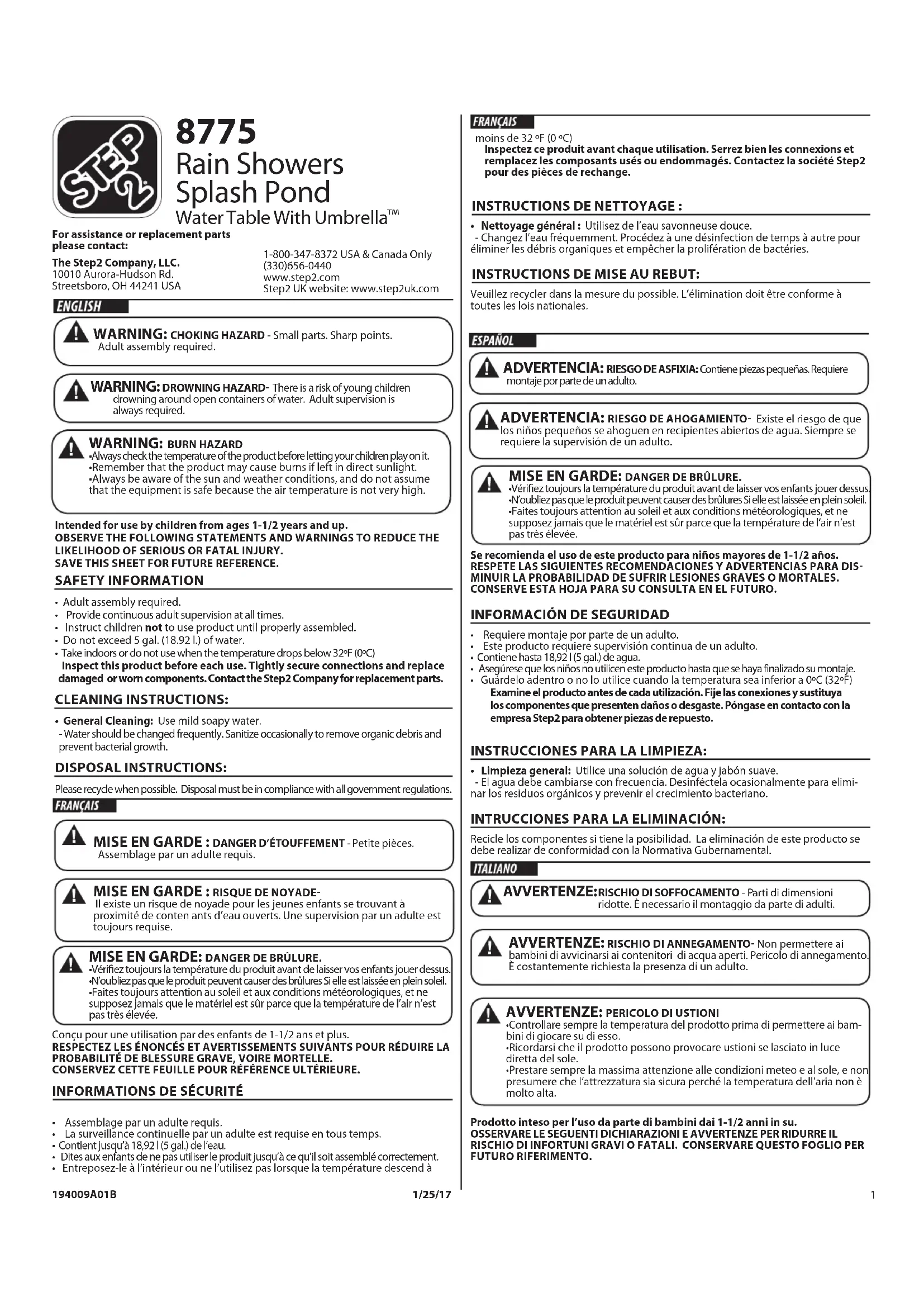 Retrouvez gratuitement la notice de l'appareil Rain Showers Splash Pond 8775 Step2 au format PDF.
