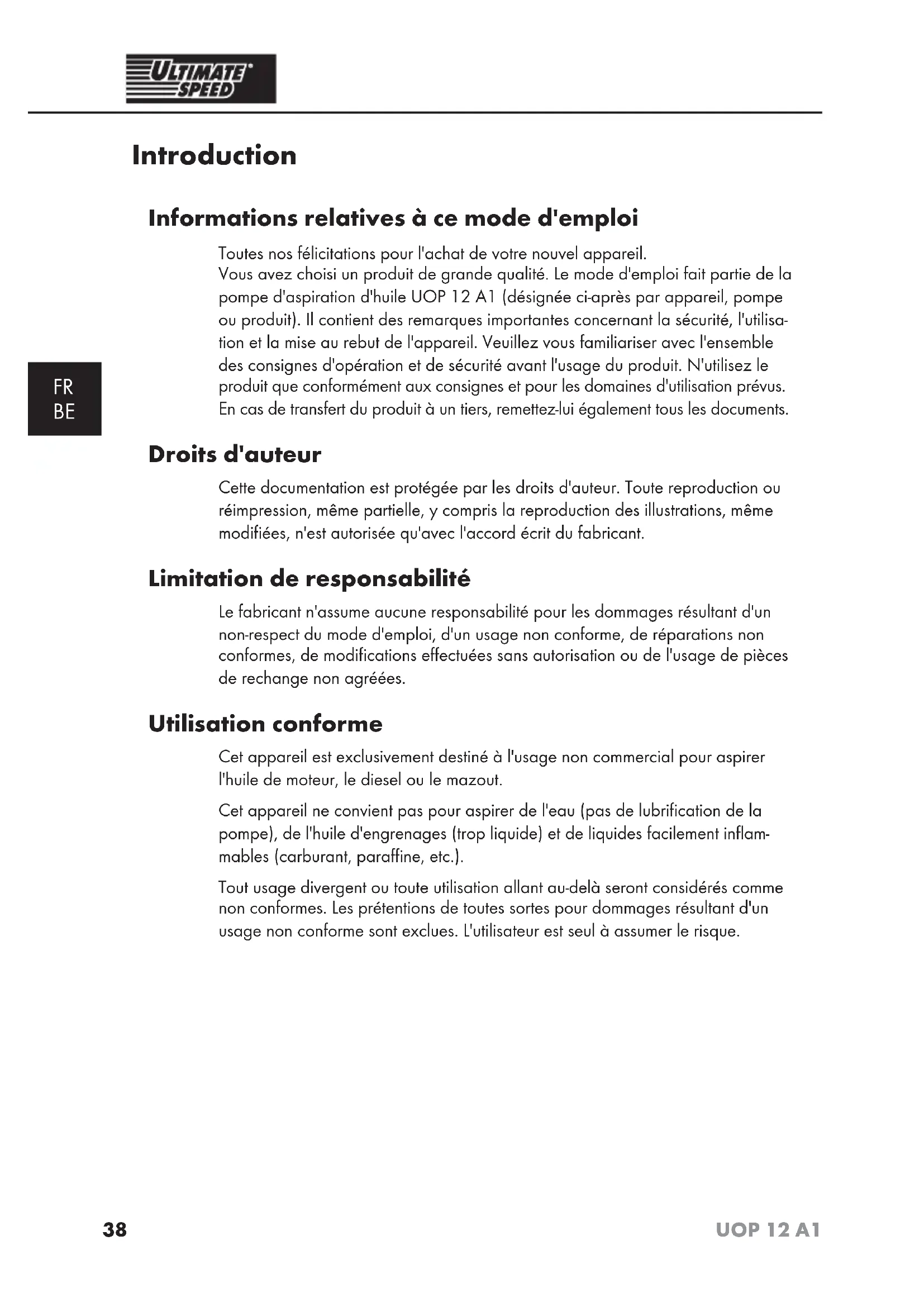 UOP 12 A1 - Pompe ULTIMATE SPEED - Notice d'utilisation et mode d'emploi gratuit