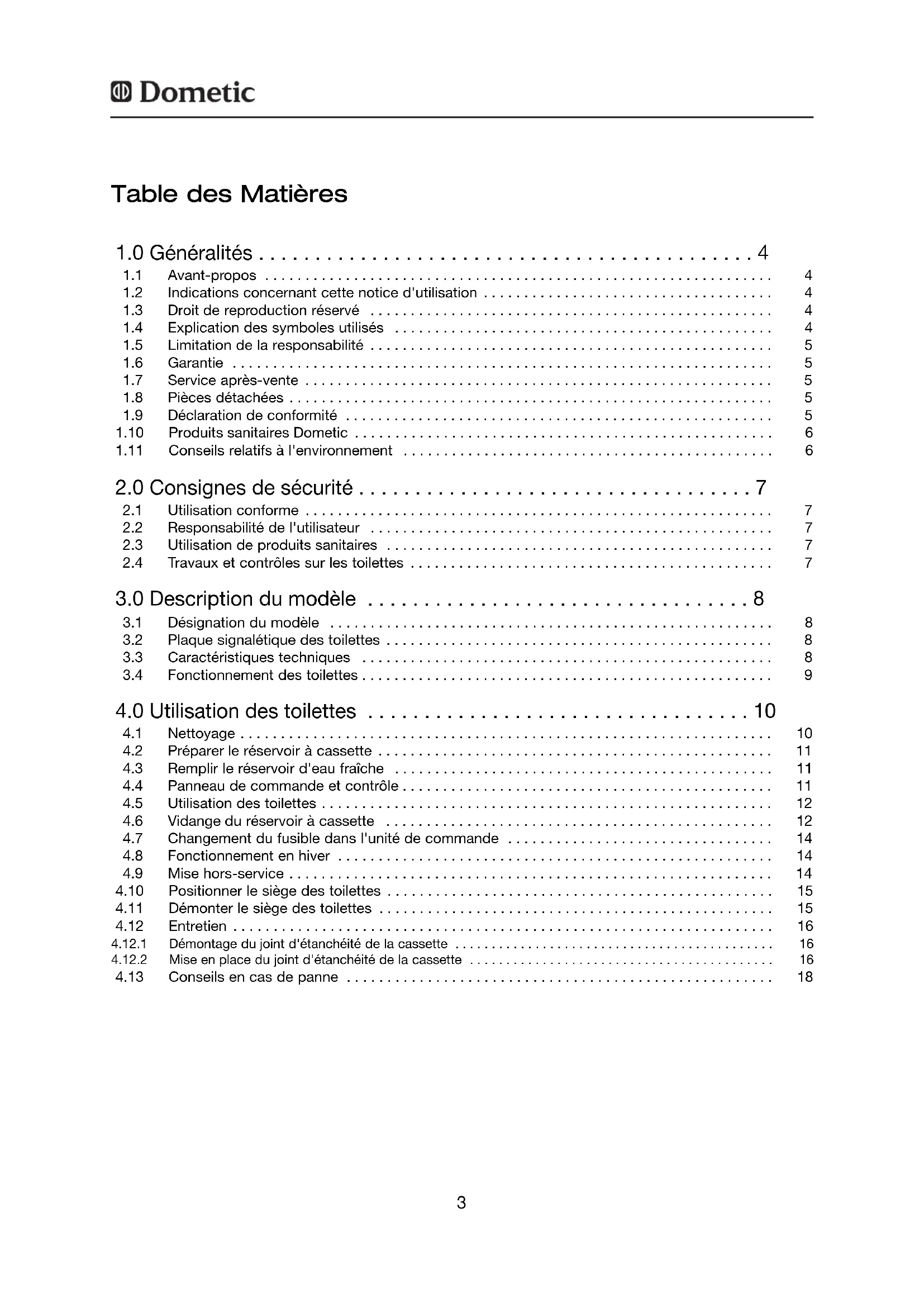 - 3.4 Fonctionnement des toilettes p. 9