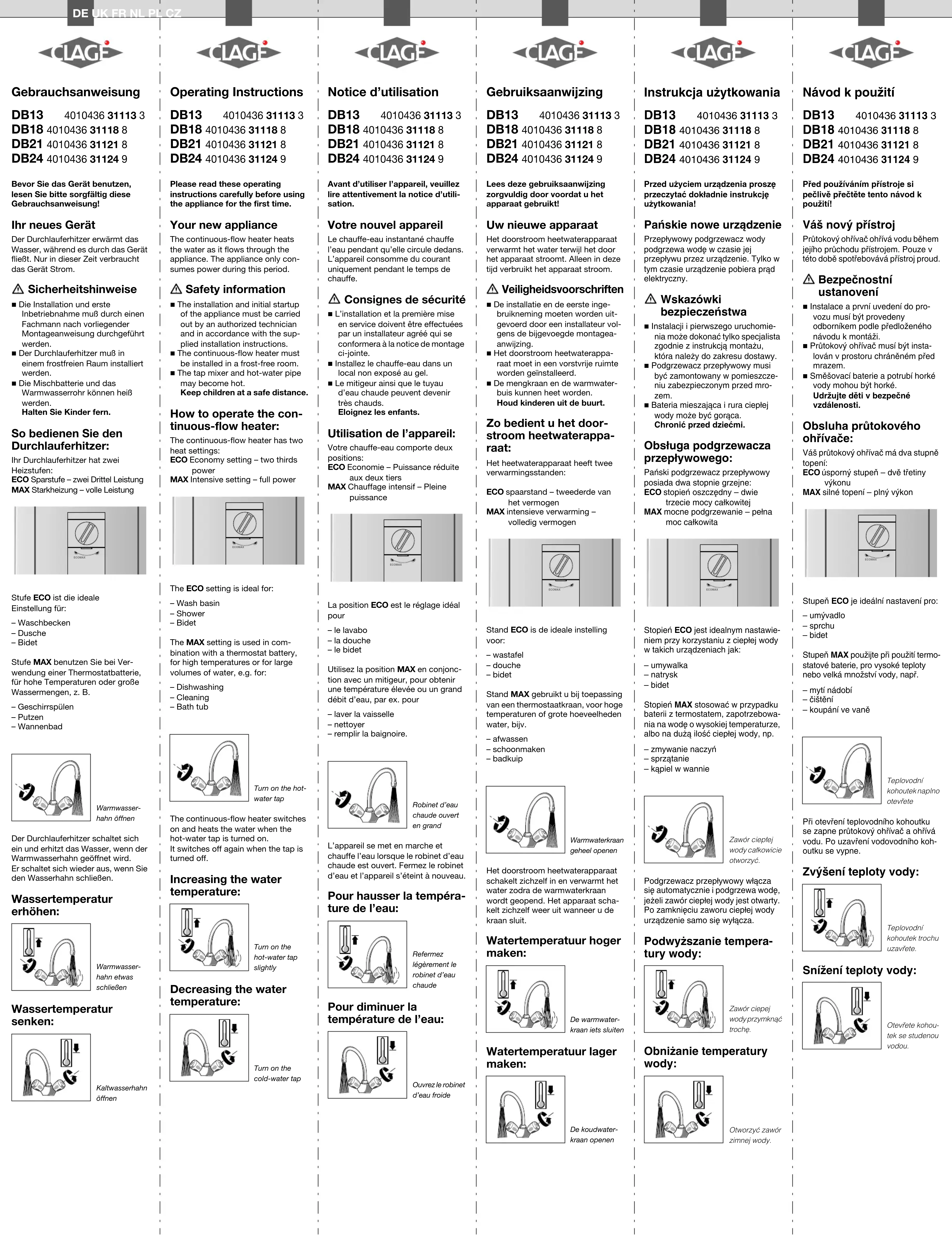 DB24 - Chauffe-eau électrique Clage - Notice d'utilisation et mode d'emploi gratuit